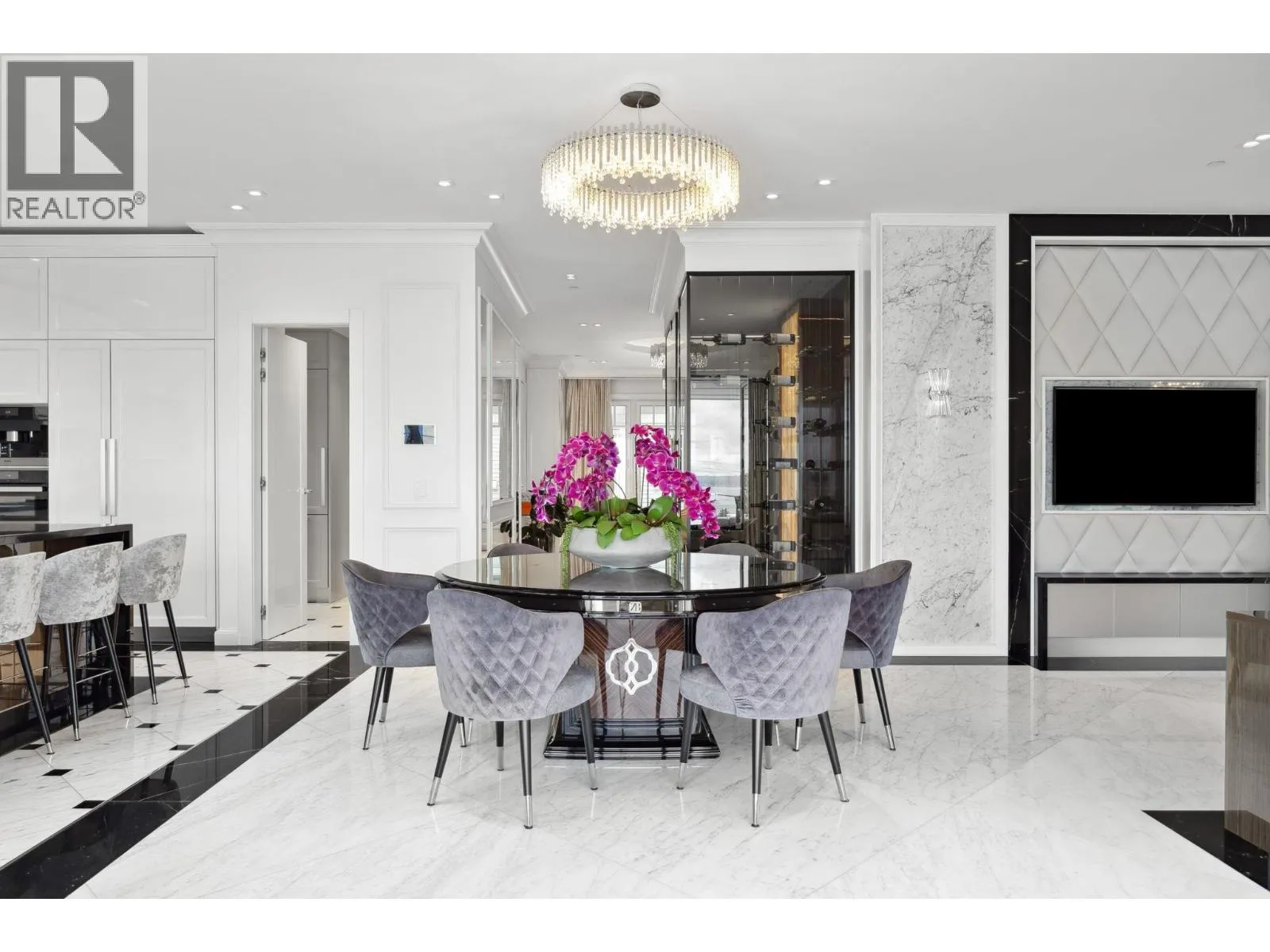 Designed by Marque Thompson, this architectural residence spans over 8,600 sqft across three meticulously curated levels. A chefs kitchen adorned with Italian marble floors, and top-of-the-line appliances, is a culinary sanctuary, while floor-to-ceiling windows capture breathtaking ocean and city skyline views. From the moment you step in- you´ll feel the warmth and grandeur of this extraordinary home. Beyond its beauty,