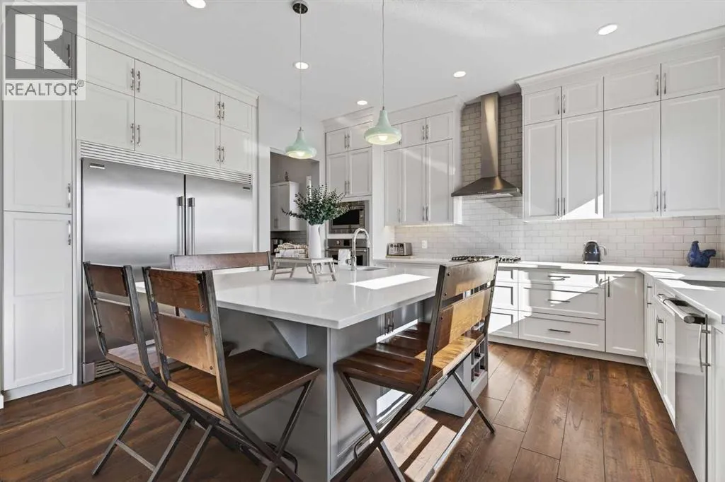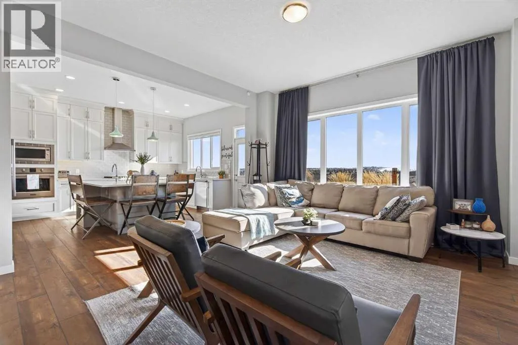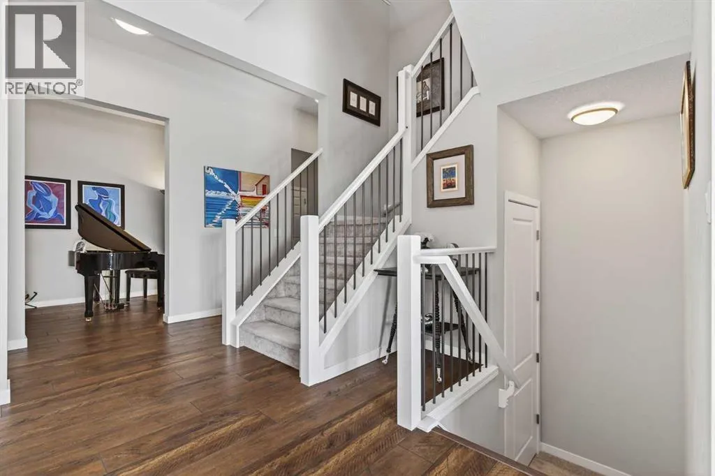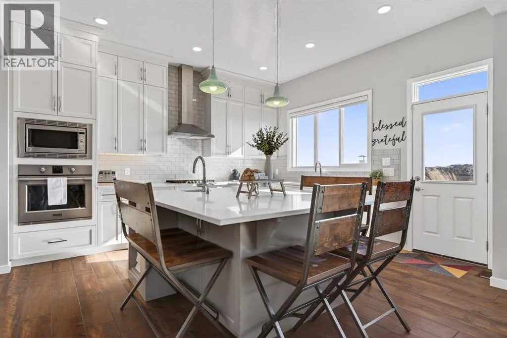moment you pull up to the twinkling GEMSTONE lights &stunning EXPOSED AGGREGATE driveway. Upgraded with a fully wrapped HARDIE BOARD exterior, the extra touches will continue to shine throughout the interior of the home. The 10 FOOT CEILINGS on the main floor will be sure to capture your eye as you enter the spacious tiled front entry. Enjoy the front flex space that can be used as a hobby space, music room, or home office. This open floor plan is perfect for entertaining! The chef-inspired kitchen is the heart of the home, featuring UPGRADED CEILING HIGH CABINETRY, QUARTZ countertops , UNDERMOUNT LIGHTING, a massive sit up island, BUILT IN OVEN & MICROWAVE , GAS COOKTOP , and a BUTLERS PANTRY! The inviting family room features a gas fireplace with a modern tile surround, creating the perfect space to relax or entertain. Adjacent to the living area, the generous dining space easily accommodates large family gatherings and dinner parties. TRIPLE PANE WINDOWS are just another upgrade you will appreciate while touring this beautiful home. Your eyes will be drawn to the IMMENSE VIEWS out every window of the south facing yard. Beautiful railing leads up the staircase to the spacious upper level where a comfortable bonus room offers the ideal setting for movie nights or family downtime. On this upper level you’ll find FOUR BEDROOMS including a luxurious primary retreat with a spa-inspired ensuite featuring dual sinks, a walk-in shower, a relaxing soaker tub, and a grand walk-in closet. You will love the size of the conveniently located upper-floor laundry room. The lower level offers approximately 1,100 sq ft of undevelope d space, with 2 windows and rough in plumbing, ready to be customized to suit your needs. The OVERSIZED DOUBLE GARAGE can easily ACCOMODATE YOUR TRUCK while still providing space for another vehicle and storage. Once you have fallen in love with inside … then step outside to a TRUE BACKYARD OASIS!! Relax on the 20’x20′ COMPOSITE DECK while watching the clouds drift through the big Alberta skies. Enjoy watching wildlife while picking vegetables out of the raised garden beds. This yard has been landscaped to perfection!! Imagine making a coffee in your new butlers pantry, then enjoying it while watching the kids play on the PERFECT GRASS, all while gazing at the outstanding mountain views. Its all possible here!! Backing onto the expansive Okotoks pathway system, enjoy the outdoor lifestyle this home offers. With its incredible ridge-top location, spectacular views, and thoughtfully designed layout, this home offers the perfect balance of style, size, comfort, and functionality for family living. (id:64429)