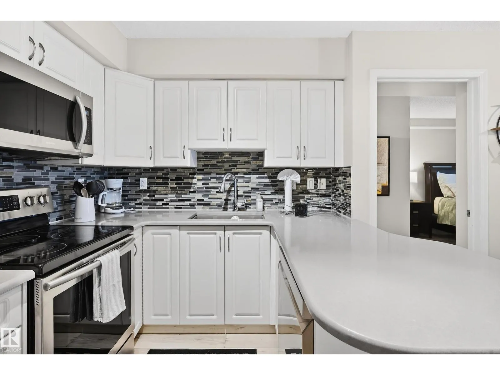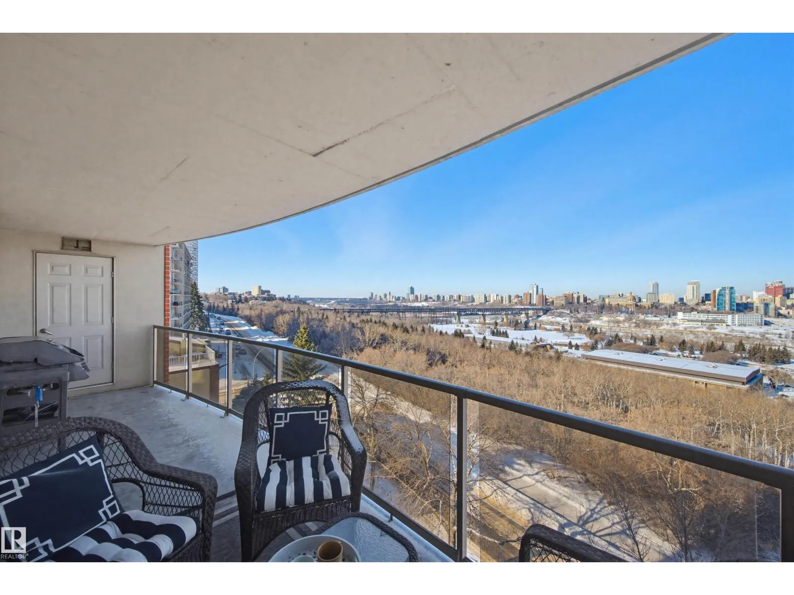 Breathtaking Views! Discover elevated urban living in this impeccably well-kept and upgraded 2-bedroom, 2-bathroom corner suite at Lord Strathcona Manor. Perched on the 7th floor, this bright, spacious condo offers stunning panoramic views of the North Saskatchewan River Valley, downtown skyline, and endless sunrises/sunsets.Step inside to a welcoming foyer leading to an open, functional layout. The gourmet kitchen features abundant
