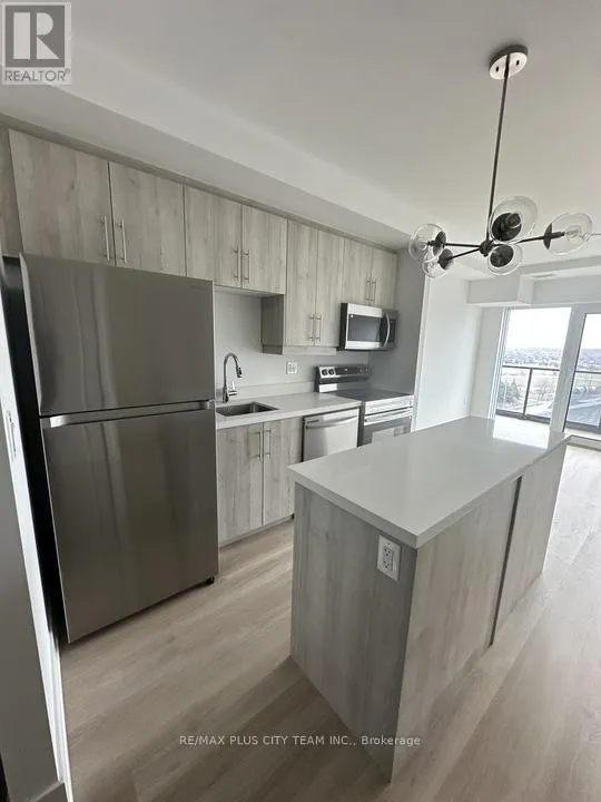 Modern 1-bedroom + den, 2-bathroom suite at Ambrose Condos offering a thoughtfully designed layout and contemporary finishes. This bright and efficient unit features an open-concept living and dining area that flows seamlessly into the modern kitchen, complete with sleek cabinetry, quartz countertops, and a central island ideal for cooking and entertaining. Large windows fill the space with natural light, creating