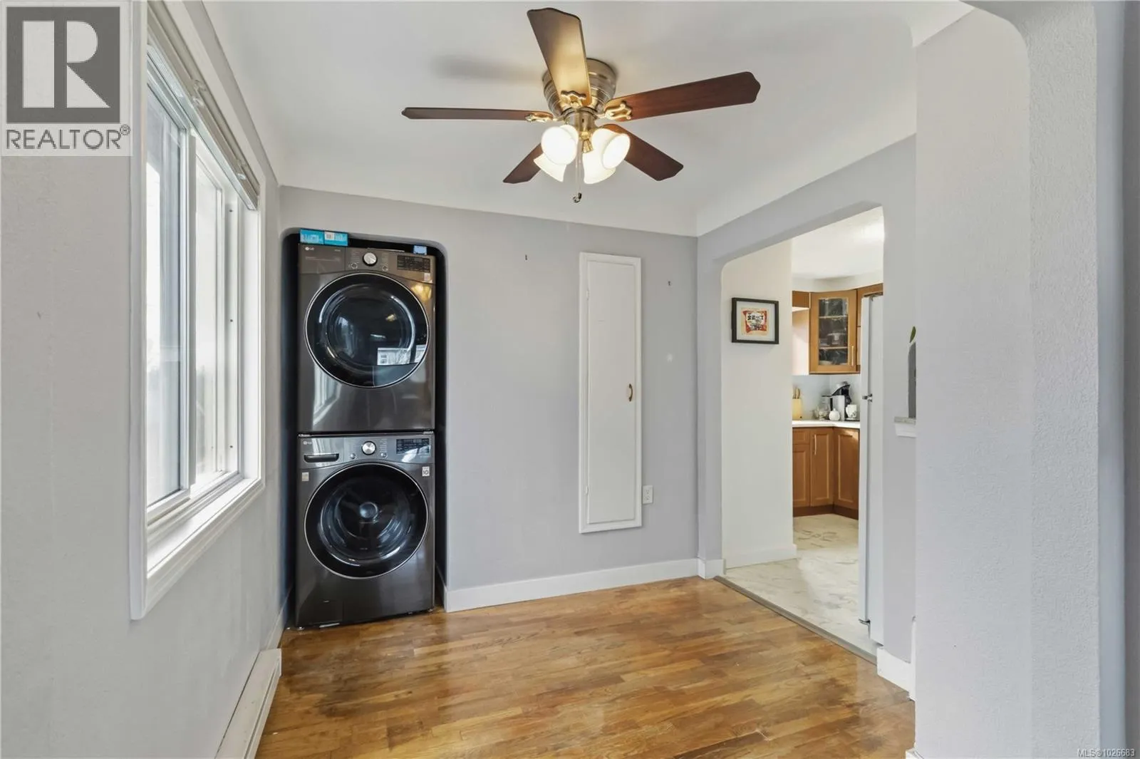 Fantastic opportunity for first-time buyers or investors! This solid home features 2 bedrooms upstairs with a functional layout, original hardwood floors, an updated kitchen, and vinyl windows. Downstairs offers a cozy, updated 1-bedroom in-law suite plus den with separate washer and dryer—perfect for extended family or rental income. A garage provides parking or extra storage, plus ample rear parking. Enjoy