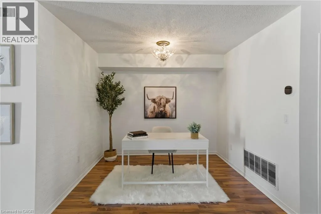 Welcome to Unit 140 at 109 Bristol Rd E, a beautifully updated stacked townhome offering 765 sq ft of bright, spacious living. This 1 bedroom plus den features an open-concept layout with soaring ceilings and a modern kitchen complete with stainless steel appliances. Updated flooring and in-suite laundry add everyday comfort and convenience. Step out to a private balcony overlooking