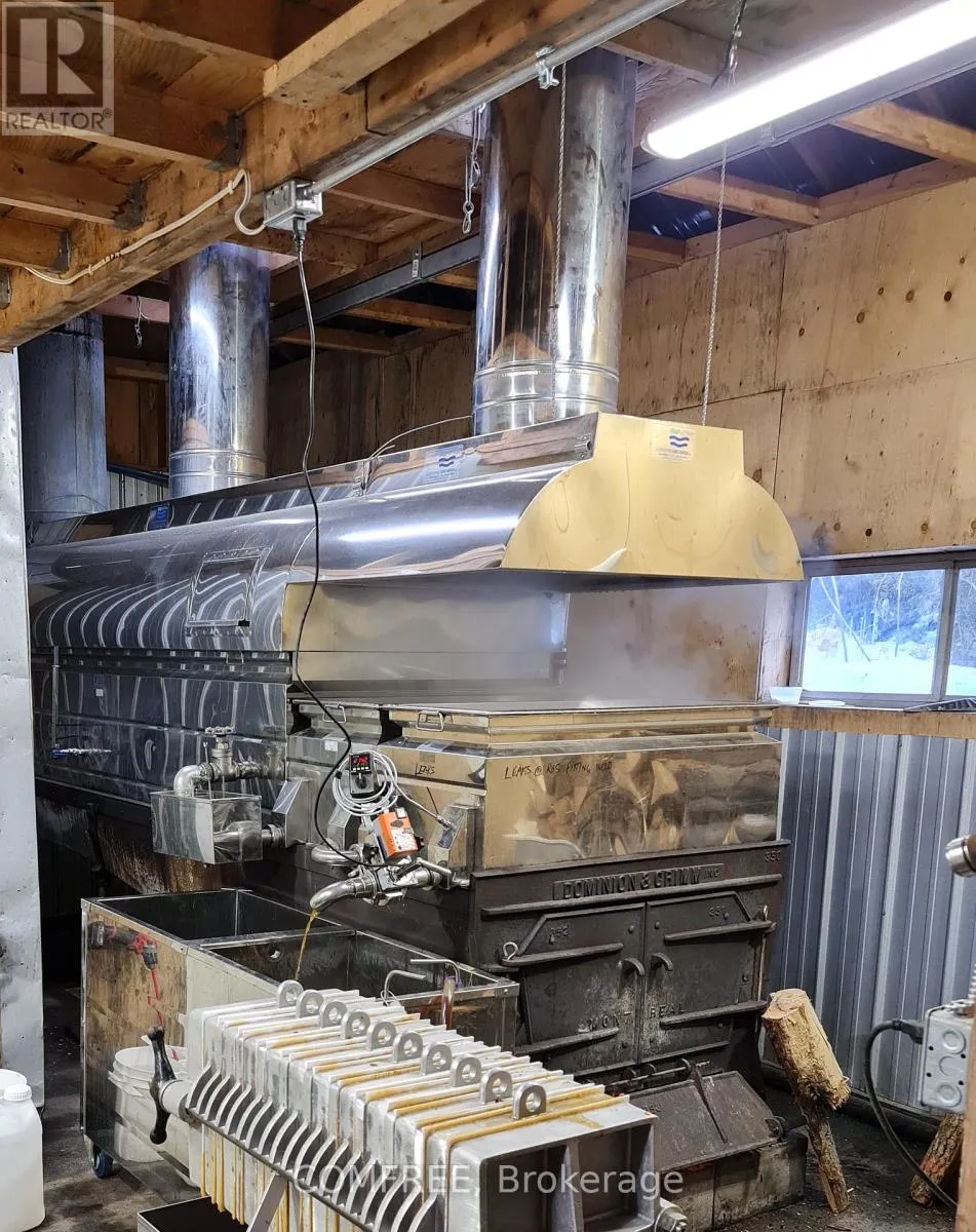 residence/property has seen significant updates, including extensive landscaping; a 2-tiered deck with luxury 7 person hot tub; new heat-pump, propane heating/cooling systems; Kinetico water system; updated kitchen/bath; wiring for a back-up generator and a finished basement with kitchen and bath, versatile for family or business needs. Nature and recreation abounds: near Lakes and Algonquin Park; 1km to the Hastings Heritage Trail for snowmobiling/ATVing; minutes from the village of Bancroft; on-site snowshoeing trails; hunting; fishing and wildlife observation (elk, moose, owls, deer, turtles, etc.). The current operation produces 100% pure, wood-fired maple syrup from a single source. Vacuum lines and Reverse Osmosis equipment make production efficient and manageable, while the sugar shack sits just steps from the home. Syrup sales can range from $55k-$125k depending on your bulk/wholesale/retail product mix. The maple operation has a brand new reverse osmosis system and overall equipment valued at approx. $230k. Has operated as a successful short-term rental as part of an agritourism business model. The current furnishings are negotiable. Whether you envision running the current operation; hiring help; expanding agritourism or simply living immersed in nature and privacy, this property allows you to build a meaningful, land-based lifestyle. Sellers can be available to cross-train and provide support for the first season. Possible to sever 120 acres from the house/sugar bush and survey already in place. (id:62650)