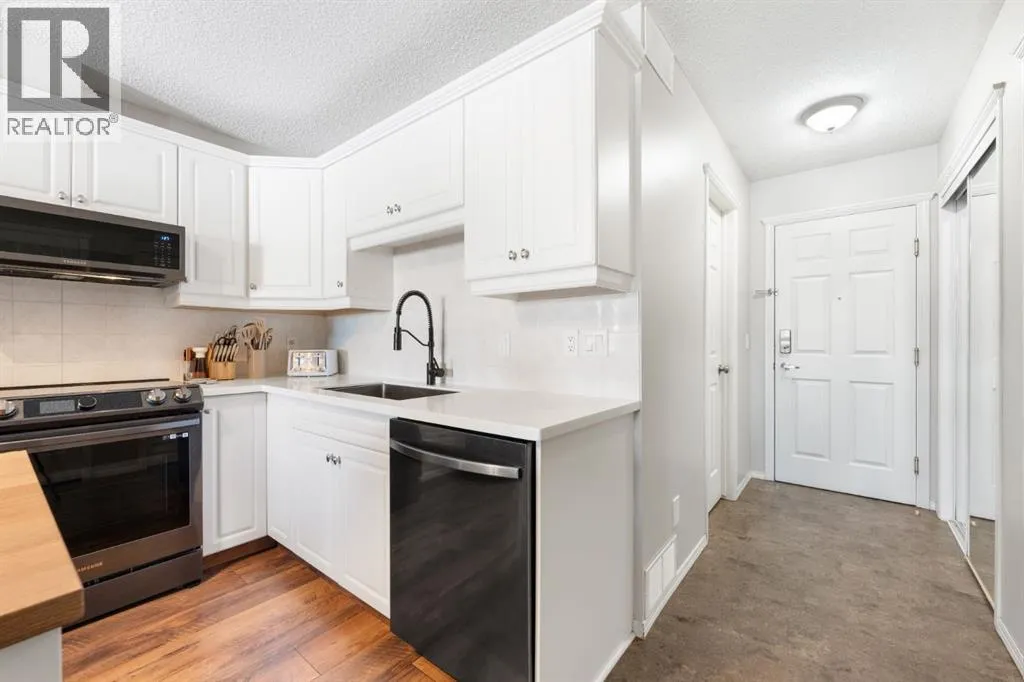 Tucked just steps from the Bow River pathways and parks, this beautifully updated two-bedroom, two-bathroom condo offers the perfect blend of comfort, privacy, and location in the heart of Bowness.Inside, the space feels bright and welcoming with an open layout that connects the kitchen, dining, and living areas. Large windows fill the home with natural light while the corner gas