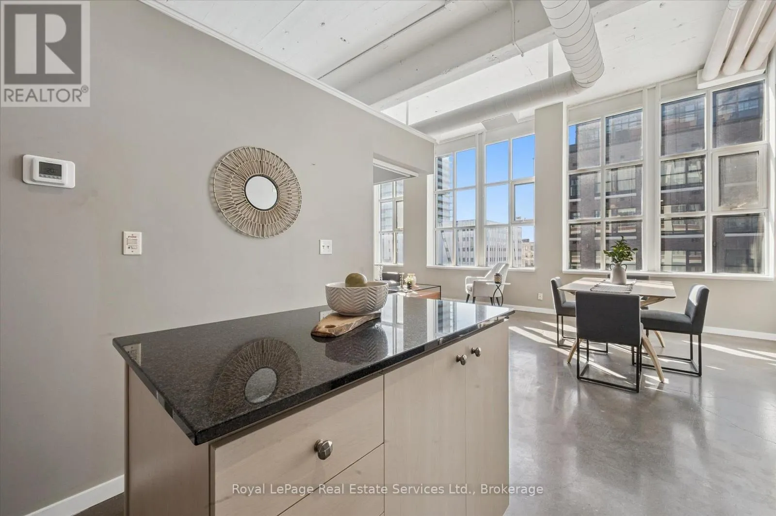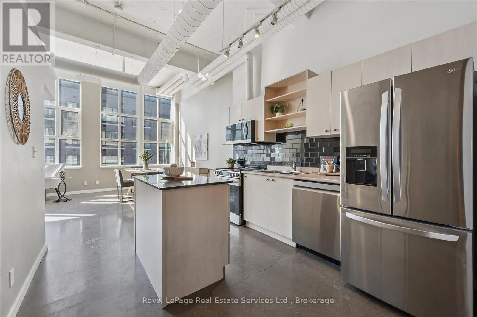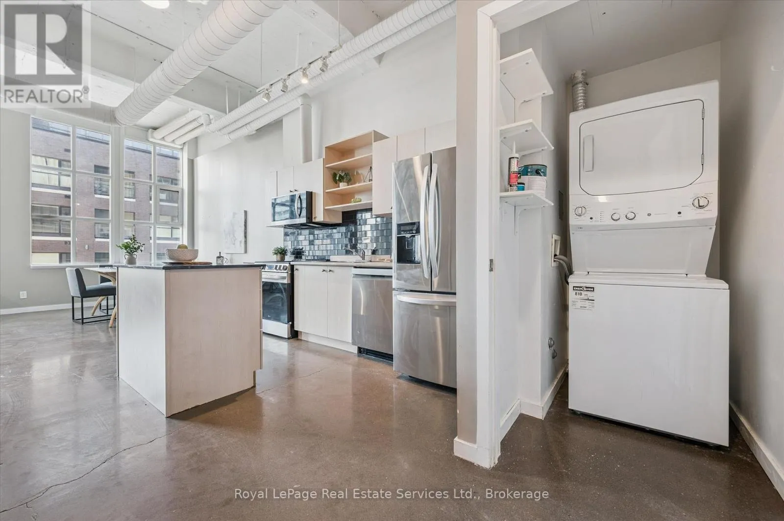 Experience authentic loft living in the heart of Kitchener’s Innovation District at Kaufman Lofts. This stylish 1 bedroom, 1 bathroom suite blends historic character with modern convenience in one of the city’s most sought-after buildings. Soaring ceilings and oversized industrial windows flood the space with natural light, highlighting the polished concrete floors and open-concept design.Offering more square footage than many