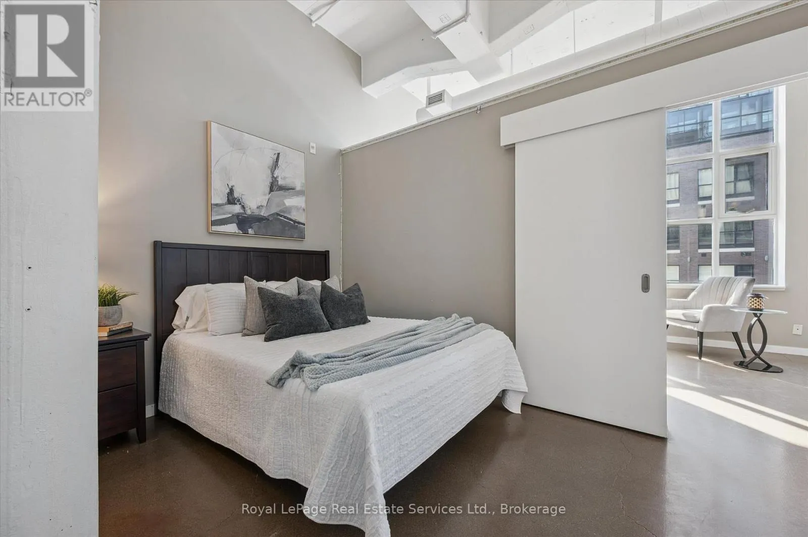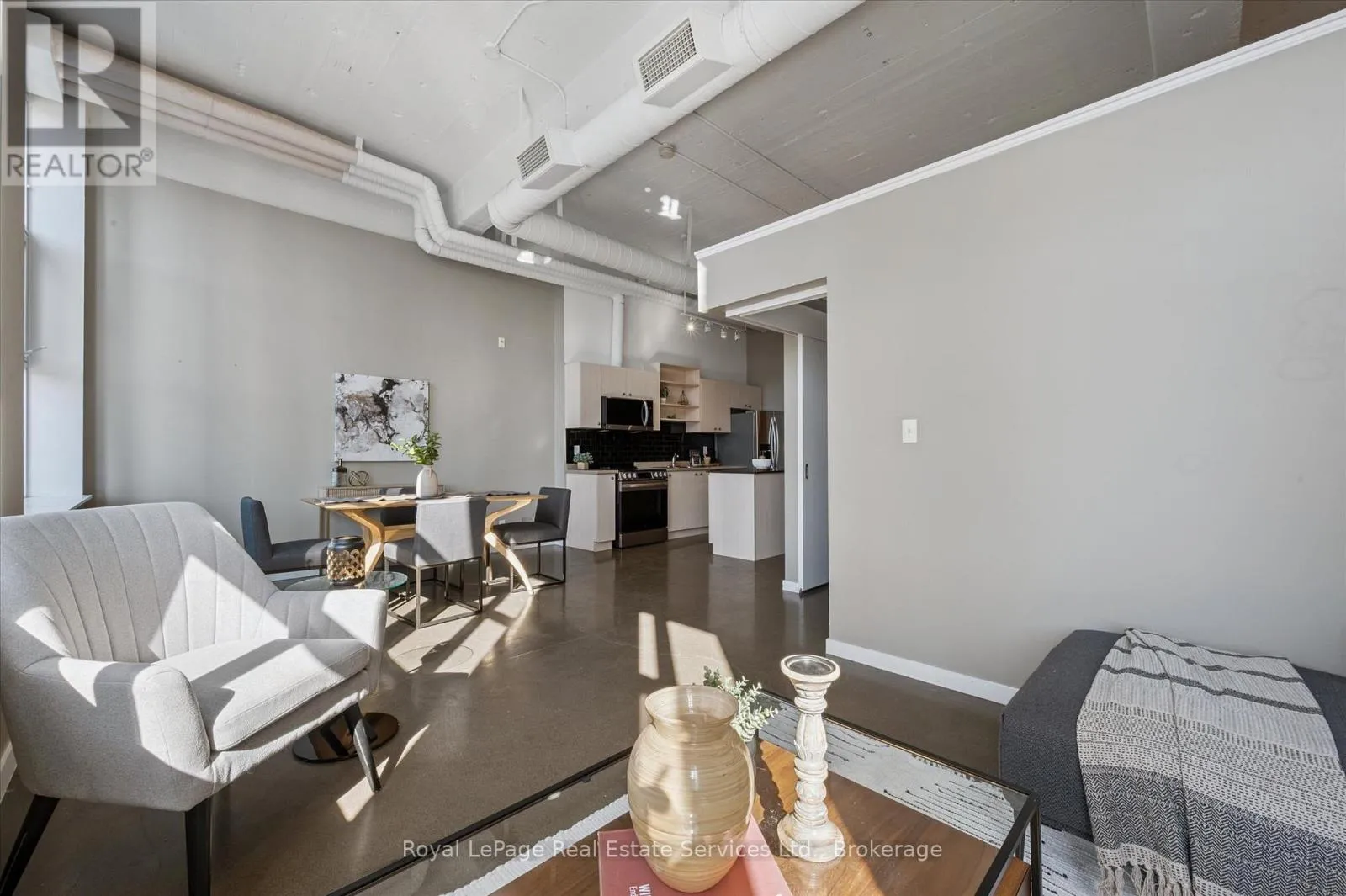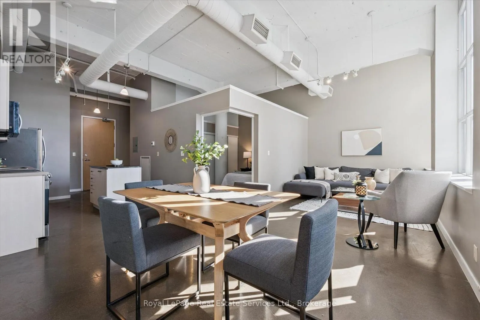 Experience authentic loft living in the heart of Kitchener’s Innovation District at Kaufman Lofts. This stylish 1 bedroom, 1 bathroom suite blends historic character with modern convenience in one of the city’s most sought-after buildings. Soaring ceilings and oversized industrial windows flood the space with natural light, highlighting the polished concrete floors and open-concept design.Offering more square footage than many