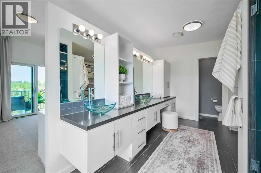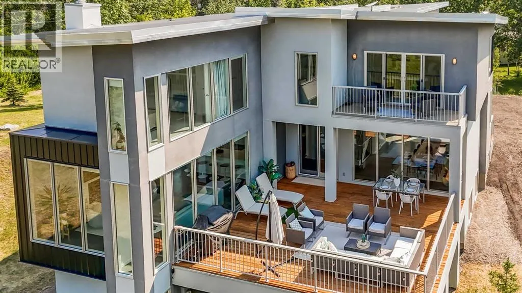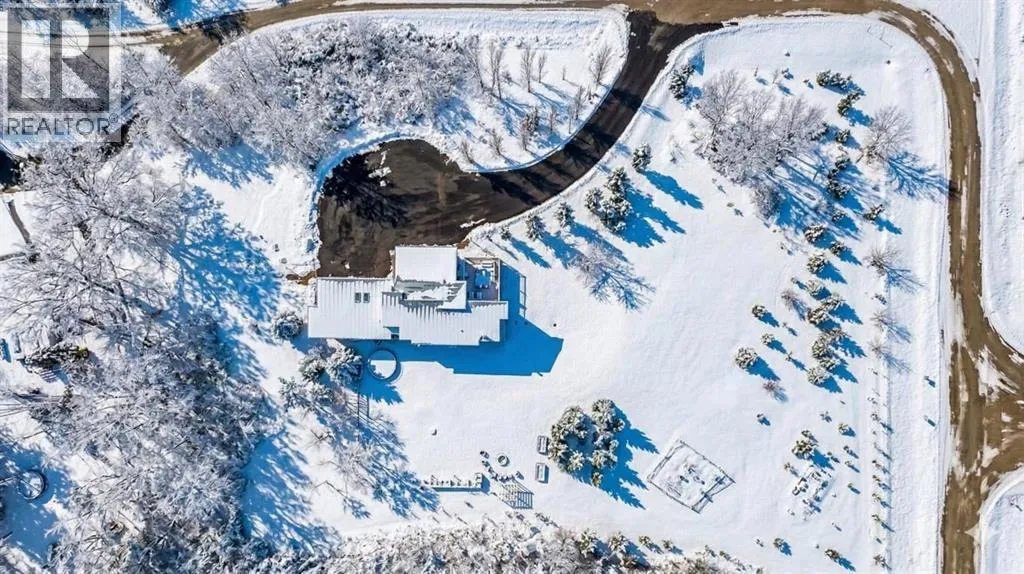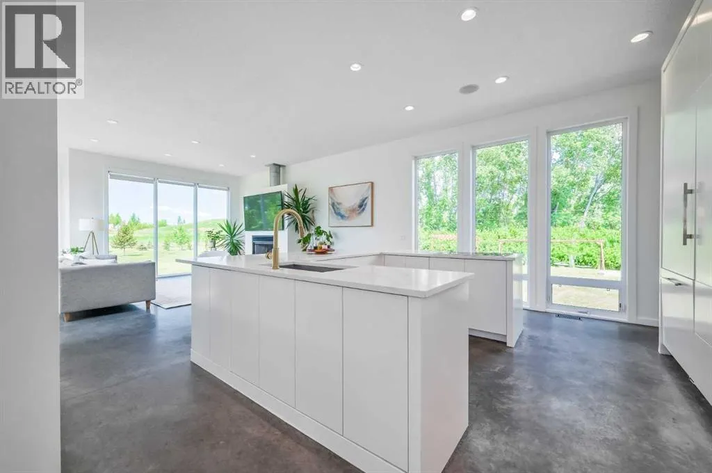 exquisitely designed living space, crafted with a seamless blend of architectural sophistication and everyday comfort. From the moment you arrive, you’re greeted by the striking contemporary design—featuring clean lines, a sleek metal roof, and purposeful elements that make this home as stylish as it is functional. Expansive floor-to-ceiling windows invite an abundance of natural light throughout, illuminating polished concrete floors and emphasizing the spacious, open-concept layout. The main dining area flows effortlessly from the state-of-the-art kitchen—complete with high-end appliances, extensive quartz countertops, custom cabinetry, and a large center island—into a generous living room with a real wood-burning fireplace, perfect for cozy gatherings and enjoying panoramic views. A dedicated den offers a quiet space for a home office or study. Each of the six well-proportioned bedrooms provides a private sanctuary, with the luxurious primary suite featuring a spa-inspired ensuite with dual vanities, a walk-in shower, makeup vanity, and open-concept closet. The remaining bathrooms are outfitted with sleek, contemporary fixtures that reflect the home’s modern character. Downstairs, the fully developed walk-out basement opens up a world of possibility, with a home theater, gym, and recreation room ready to suit any lifestyle. Adding incredible value is the thoughtfully designed 2-bedroom legal suite above the triple-attached garage, with a private entrance and full kitchen—currently generating $2,100 per month in consistent rental income , making it ideal for investors, multigenerational living, or offsetting mortgage costs. The expansive lot includes mature landscaping, a 3,500-gallon cistern, a large deck for entertaining, and wide open spaces perfect for gardening or play—all set against sweeping prairie views. Lovingly maintained by the original owner and built with premium materials throughout, this home combines modern luxury with practical functionality. Despite its peaceful rural setting, the property is just minutes from Calgary’s city limits, the South Health Campus, top-rated schools, shopping, restaurants, and all essential services. Whether you’re searching for a luxurious family retreat, a flexible multigenerational setup, or a savvy investment opportunity, this extraordinary estate offers unmatched versatility and timeless appeal. This property is a must see in person to truly take it all in. Ask your favorite realtor and come on Buy! (id:64429)