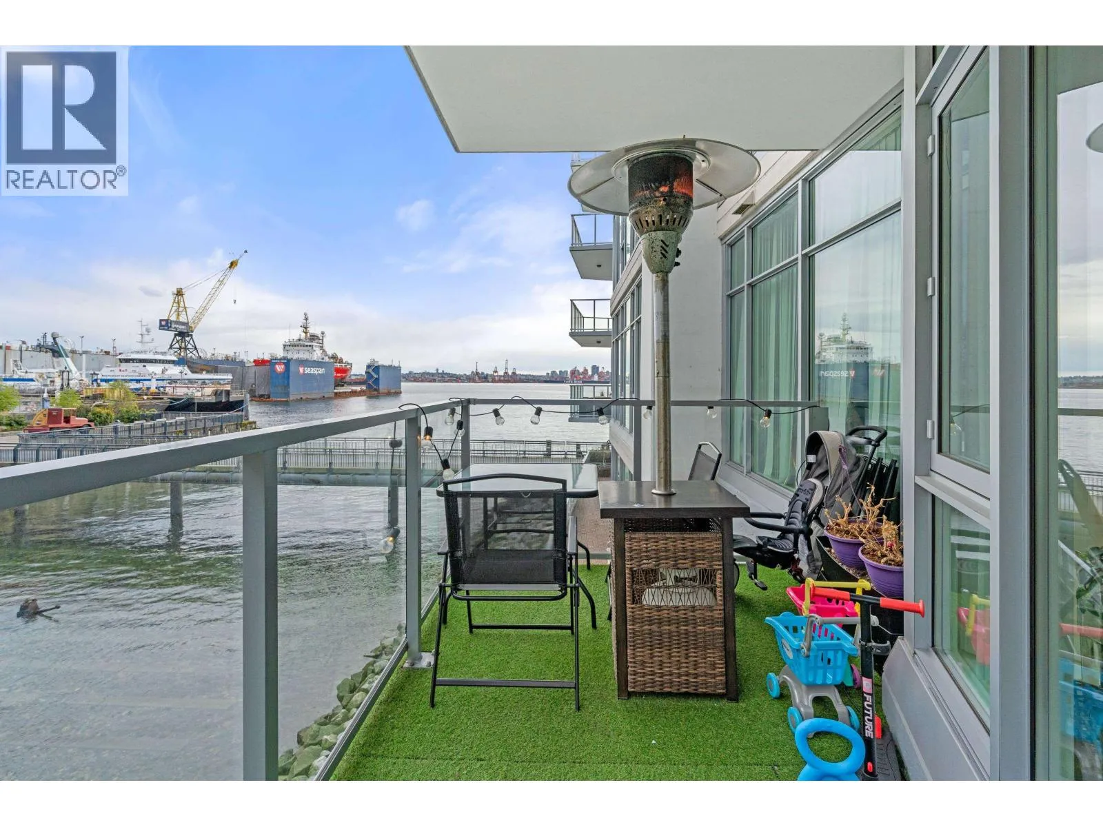 A stunning 2 bedroom, 2 bathroom, + Den WATERFRONT unit located in the HEART of Lower Lonsdale. This Waterfront condo boasts beautiful views of the water, while your large balcony overlooks the private beach! Featuring 9 foot ceilings, air conditioning, hardwood flooring, and high-end appliances, this unit is the definition of luxury waterfront living. Owners get special VIP privileges at