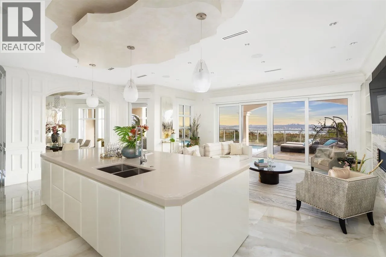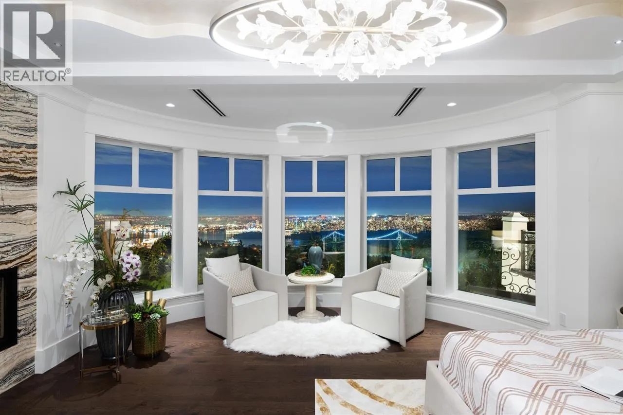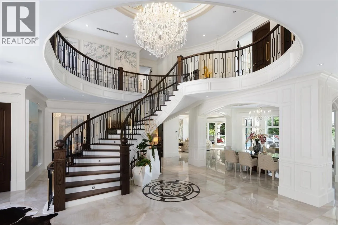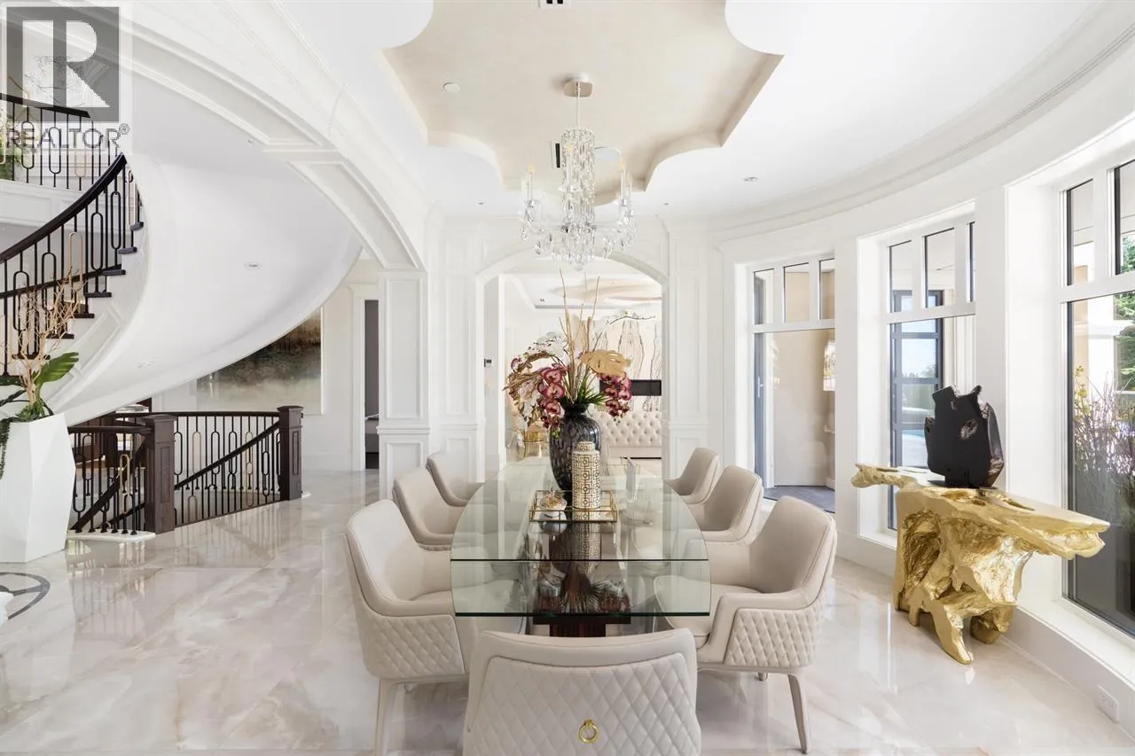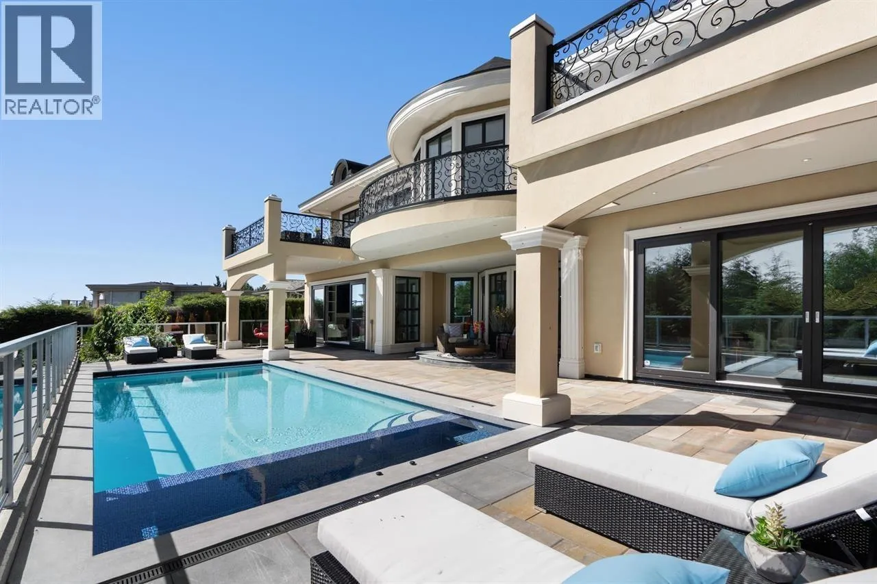 Panoramic VIEWS OF WATER, CITY, STANLEY PARK, LIONS GATE BRIDGE, UBC. A truly impressive residence designed by “David Christopher”, custom build “Home by Valentino” in prestigious Chartwell. Luxury 10118 sf home on 16270 sf lot. Grand Foyer with 20ft hand painted dome ceiling above splendid Schonbeck crystal chandelier. Onyx look Italian tile on main/basement, hardwood on upper. Italian cabinets from