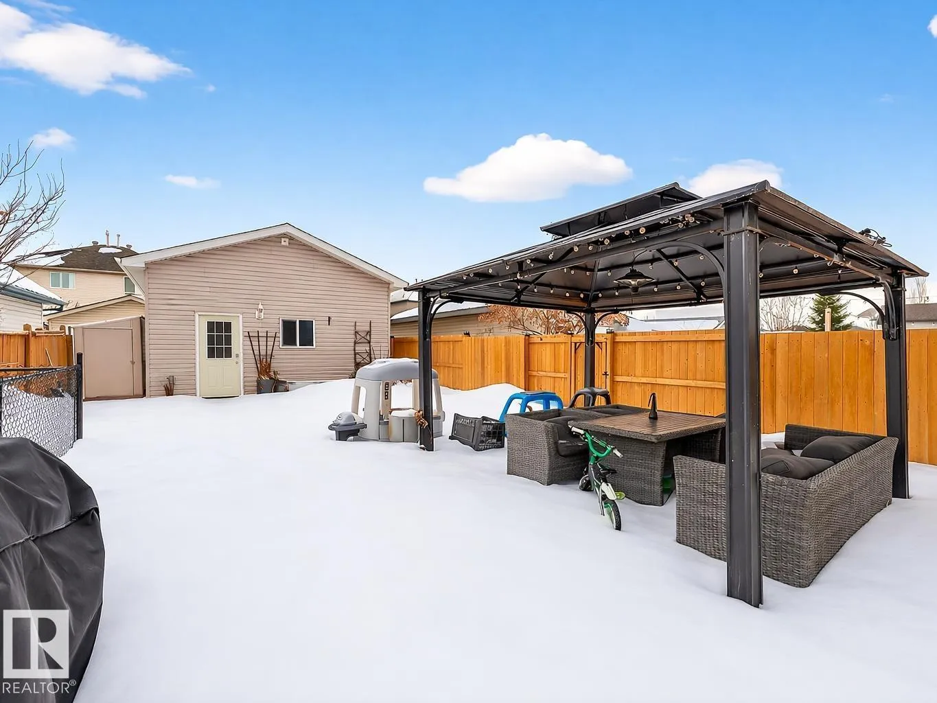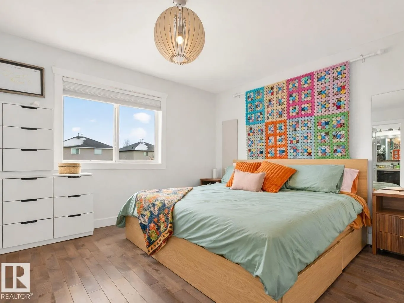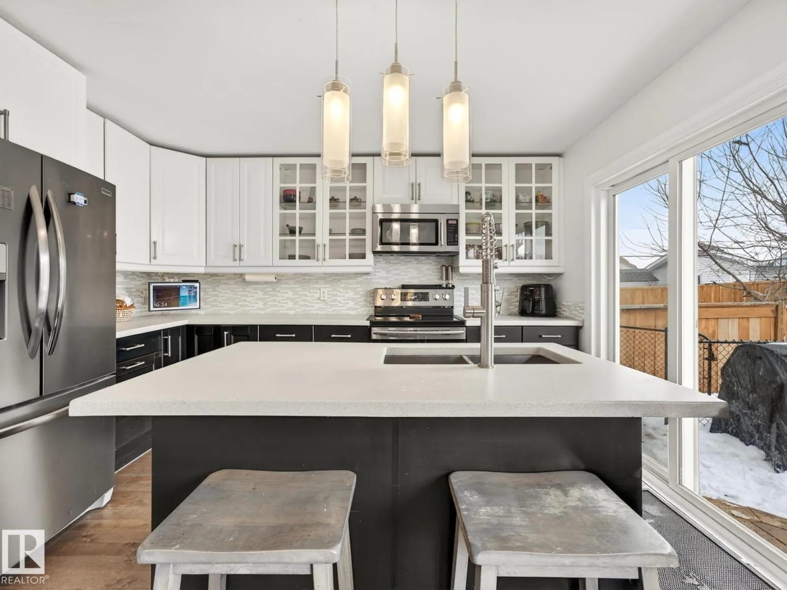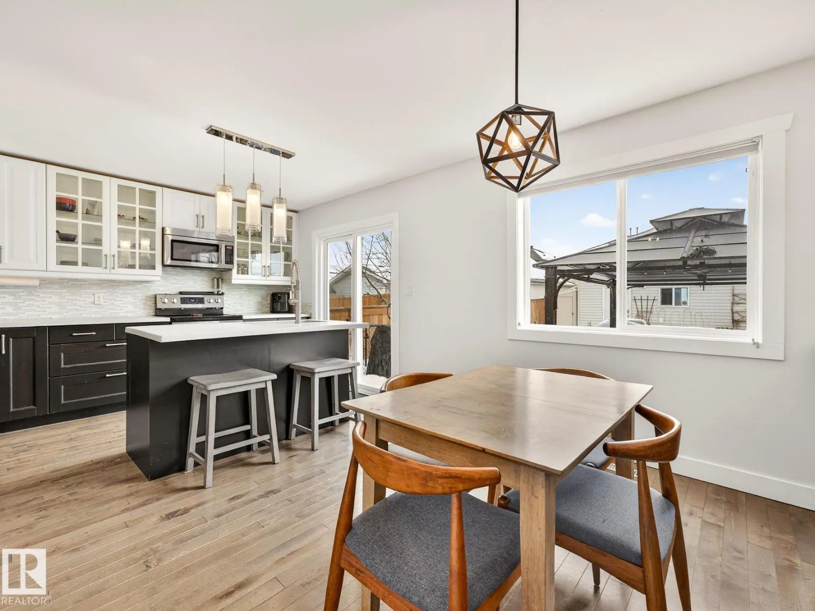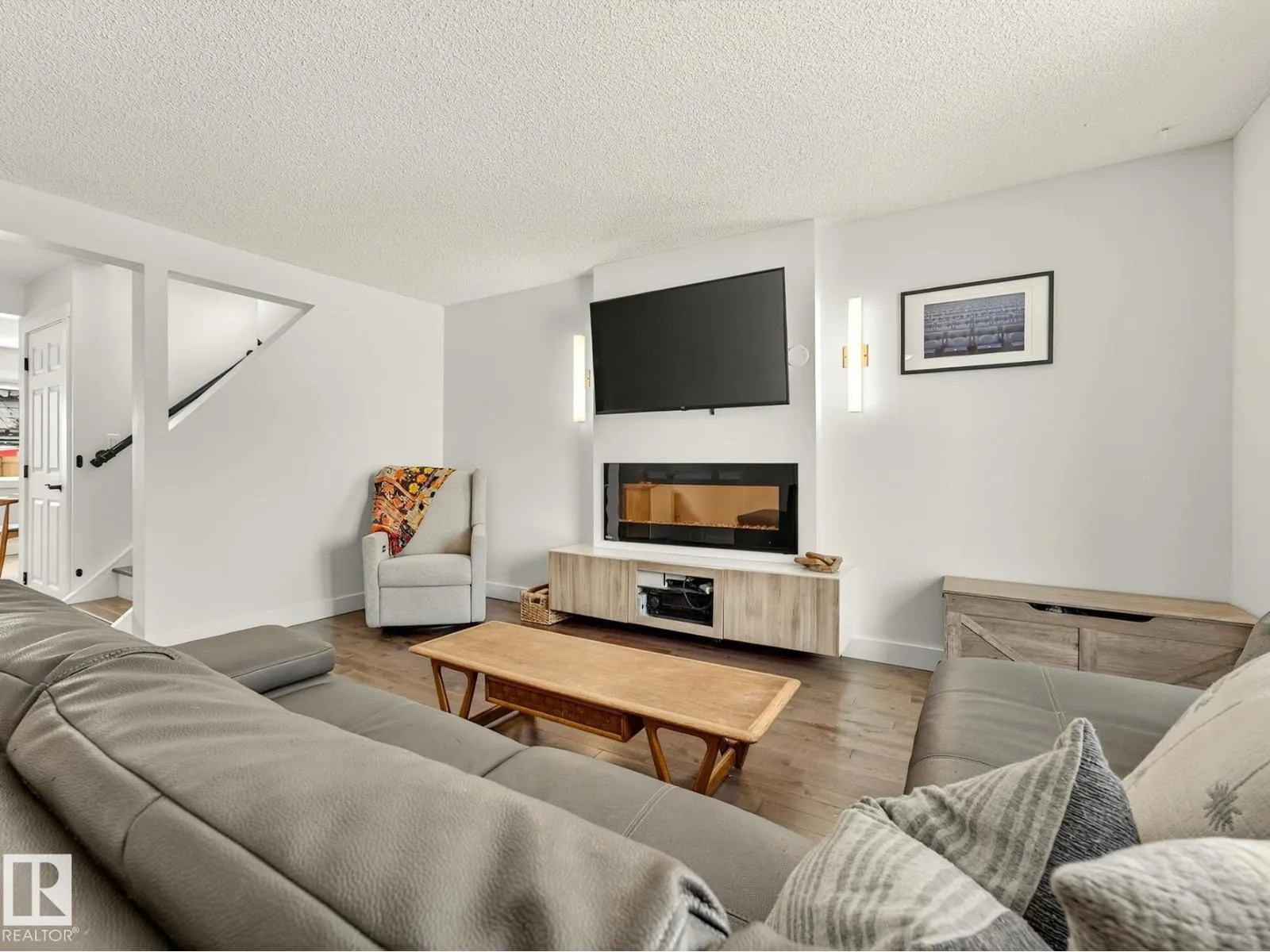 Thoughtfully upgraded with timeless modern appeal, this beautifully finished 4-bedroom two-storey in Klarvatten showcases exceptional attention to detail and quality craftsmanship throughout. Rich hardwood flooring flows across the main and upper levels, setting the tone for the home’s refined interior. The inviting living room centers around a striking crystal glass fireplace with floating console creating the perfect space to unwind.