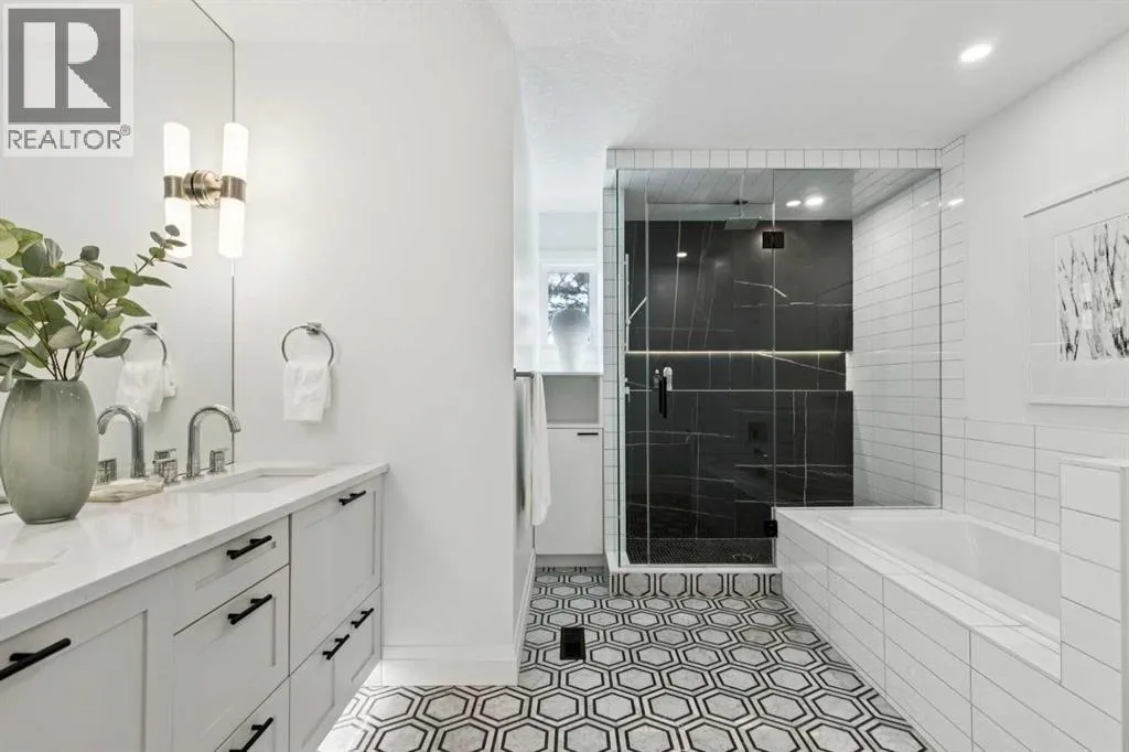 with uncompromising attention to detail, this open-concept home showcases engineered hardwood flooring throughout — including the upper + lower levels (2024) — with absolutely no carpet anywhere. High-end windows, updated plumbing + electrical, HE furnace, air conditioning (2025), flat ceilings, fresh stucco + paint, LED lighting, custom built-ins, designer tile work in cement/porcelain/marble, quartz counters + custom glass accents create a polished + cohesive aesthetic from top to bottom. The heart of the home is a stunning renovated kitchen featuring a statement island, professional-grade appliances, gas cooktop + sleek custom cabinetry. The expansive informal dining room is anchored by a beautiful gas fireplace which allows for seamless indoor-outdoor living as the interior flows effortlessly to the private backyard through newly installed (2024) expansive Lux sliding doors. A dedicated main floor office offers the perfect work-from-home solution, while the oversized mudroom with built-in lockers keeps busy family life beautifully organized. The double attached garage offers generous space for vehicles and storage, now enhanced with a dedicated 240V/50A circuit (2024) for high-speed EV charging. This infrastructure is supported by a newly installed (2024) 200-Amp electrical panel, making the home solar-ready for immediate installation without the need for further utility upgrades. Upstairs, four well-sized bedrooms with built-in closets await, along with convenient upper laundry. The primary suite is a true retreat — privately positioned as its own wing — featuring a walk-in closet + a spa-inspired ensuite with heated marble floors, dual vanities, stand-alone shower + luxurious soaker tub. A charming family bath completes the upper level. The fully developed lower level expands your living space with a large family room featuring a gas fireplace, dedicated gym area, play space, a guest room + a full bath. Outdoors, enjoy a huge new Timbertech deck (2024) surrounded by mature landscaping — complete with a new irrigation system for the entire property (2024) This private setting is perfect for summer gatherings + quiet evenings alike. (id:62650)