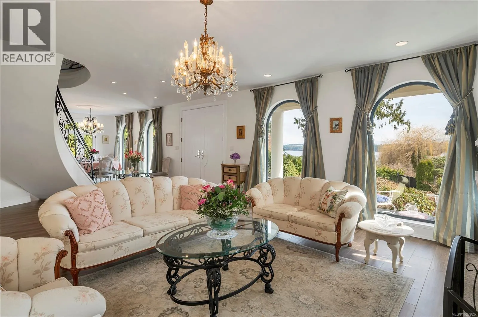 Beautiful ocean view country estate nestled near the heart of Union Bay! This unique home boasts French colonial architecture and custom features throughout. From imported wrought iron railings and gates, to floor to ceiling coved windows & complementary lighting fixtures, every inch of the home has been thoughtfully built and curated. Entering the home through the covered front