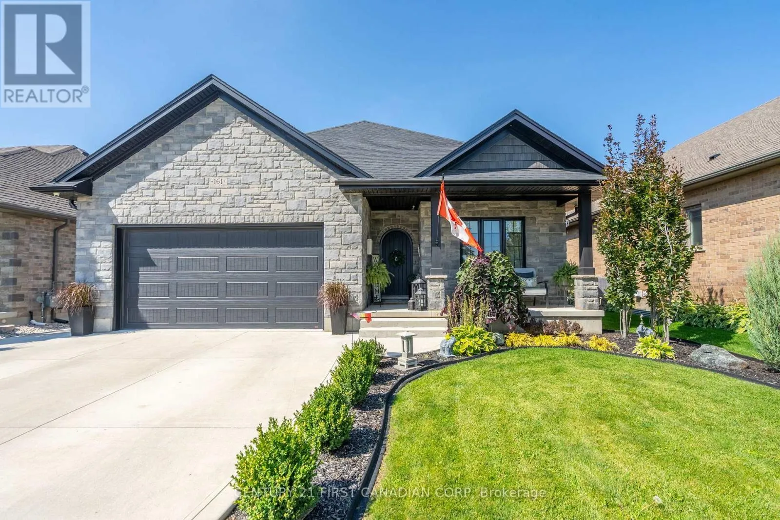 Wes Baker and Sons have built a stunning all-brick and Stone ranch home in Strathroy’s prestigious area close to Caradoc Sands Golf Course, Walmart, LCBO, and easy access to 402 offering 5 bedrooms and 3 bathrooms. The finished lower level, fireplaces, and tray ceilings add to the homes elegance, granite countertops and hardwood floors provide a modern touch. The kitchen