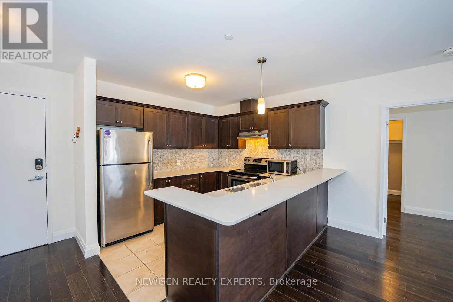 Spacious 1130sqft of Condo Unit with 2 Bed, 2 Bath in Downtown St. Catharines! Welcome to Wellington Residences – a modern 28-unit boutique building in the heart of St. Catharines. This unit features an open-concept layout with engineered hardwood flooring throughout, high ceilings, and a private balcony. The designer kitchen offers quartz countertops, tile backsplash, and ample cabinetry. The spacious