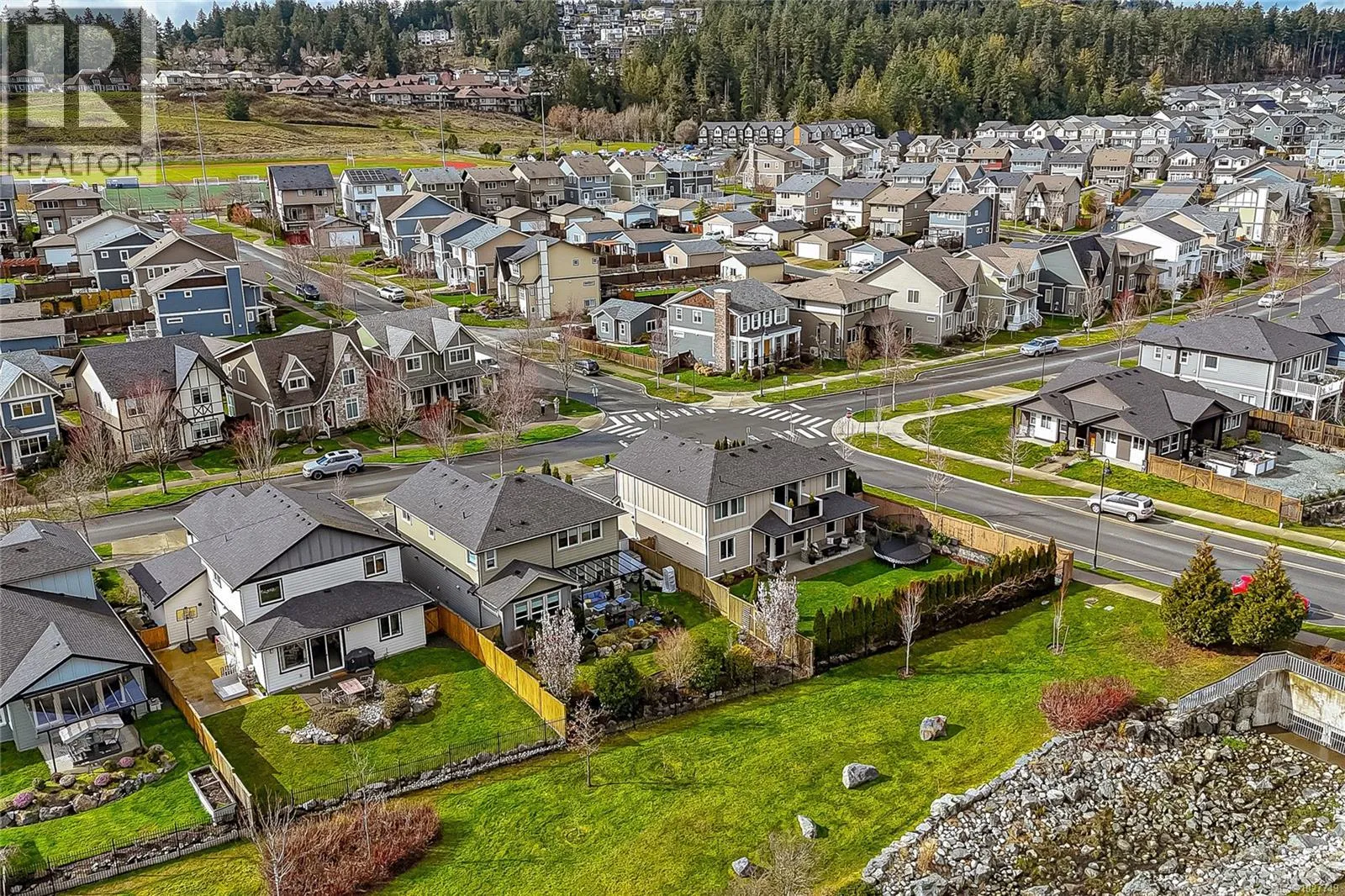 Welcome to this impeccable, large home on the corner lot in Royal Bay! Main level features an open-concept living area with large windows, a gourmet kitchen, spacious dining area, living room with a fireplace and stylish shiplap wall, powder room, laundry and a private office, or an extra bedroom. Upper level features four spacious bedrooms including a primary suite with
