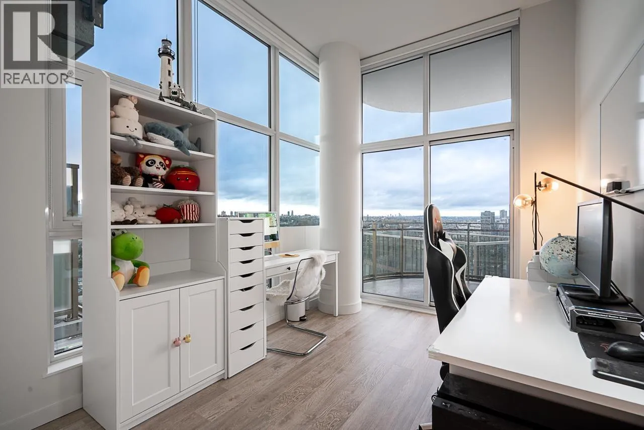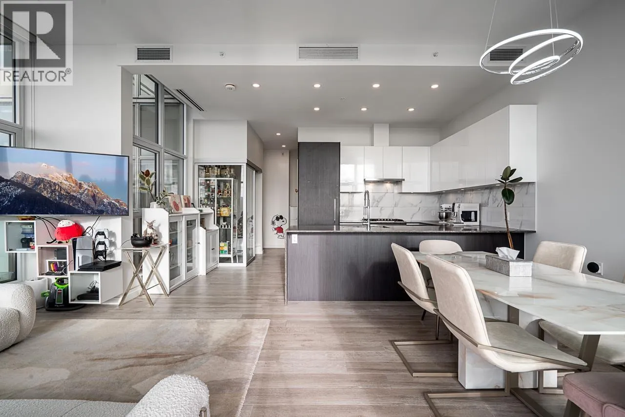 Luxury living in the stunning ETOILE sub-penthouse by Millennium Development, S/W facing with unobstructed views of Mount Baker and Metrotown. This elegant 2 bed, 2 bath plus den home features 10.8 ft ceilings, floor-to-ceiling windows, air conditioning, and refined modern finishes. The chef-inspired kitchen offers a waterfall island, Bosch appliances, and quartz countertops, complemented by spa-like bathrooms. Enjoy a 240