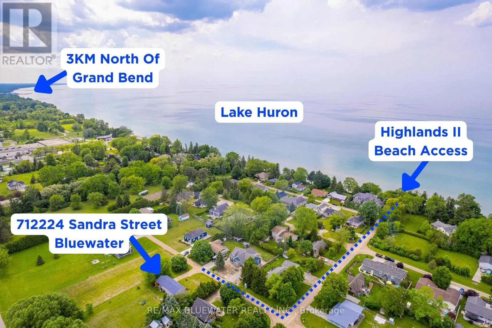 Welcome to 71224 Sandra Street, Bluewater, located in the desirable Highlands II subdivision just 4 km north of Grand Bend along the beautiful sandy shores of Lake Huron. This charming four-season home or cottage near Grand Bend offers comfortable year-round living with natural gas furnace and central air conditioning. Step inside to a bright open concept layout perfect for entertaining