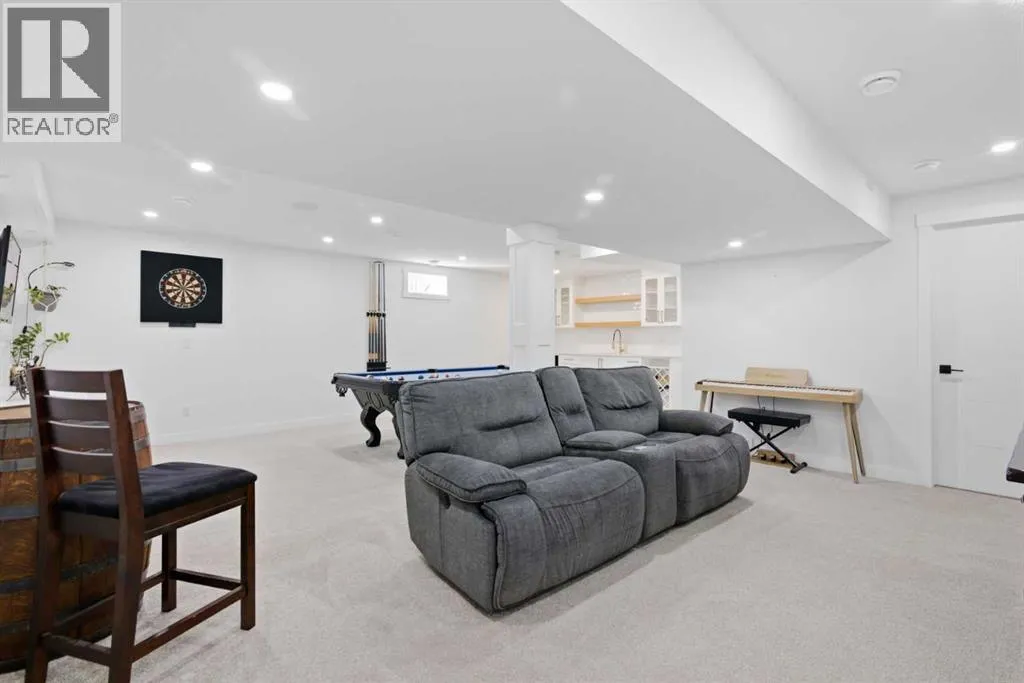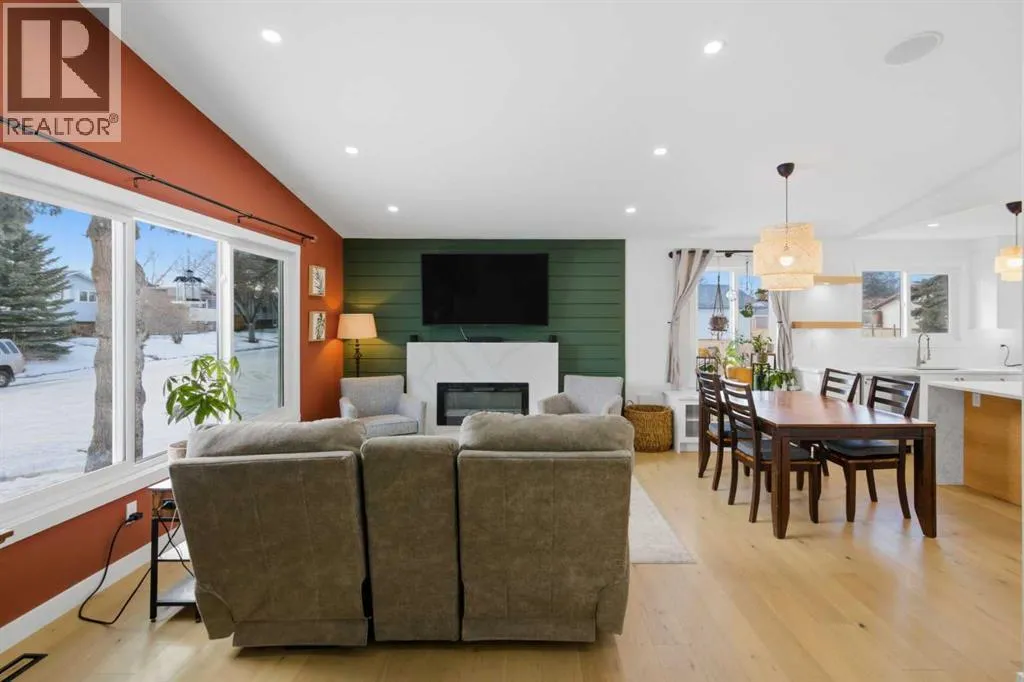 and custom in-ceiling speakers.On the main floor, the spacious primary retreat with a striking feature wall truly stands out! Thespa Inspired ensuite features a walk-in glass shower, deep soaker tub, a double vanity withelegant finishes and a dream walk-in closet. Paired with a second bedroom and a seamless flowfrom the kitchen to the living room, which is filled with bright south-facing sunlight. The fullydeveloped lower level creates the perfect gathering space, complete with a stylish wet bar and cozy lounge area ideal for hosting family & friends. Finishing off the basement with 2 fullbedrooms, laundry and storage.Step outside to your covered outdoor oasis, a peaceful extension of the home- perfect forenjoying Calgary’s summer evenings. The expansive corner lot provides additional yard spacefor recreation and outdoor living, all enclosed by a brand-new fully fenced backyard with anoversized double gate for easy trailer or small equipment access.The home’s exterior showcases Hardie board siding, providing exceptional durability along witha clean, upscale aesthetics designed to stand the test of time. Inside all major appliances,drywall, windows, spray foam insulation, HVAC, hot water tank, plumbing pipes, electricalwiring, and roof have been updated within the past two years offering peace of mind andmodern efficiency. Those hot Alberta summers are no match for the recently installed central AC!Families, car enthusiasts and hobbyists will appreciate the rare garage configuration that offer’s adouble oversized de tached garage plus a single attached garage, both featuring durable epoxyfloors. The single attached garage offer’s the added convenience of a functional boot room entryinto the home. With its proximity located just a short walk from a dog park, Fish Creek Provincial Park, schools,pathways and everyday amenities, this home delivers the perfect balance of nature,convenience, and refined living in one of Calgary’s most welcoming communities. Beautifully upgraded, perfectly located, and thoughtfully designed, this is a rare opportunity toown a truly standout home in Queensland. (id:64429)