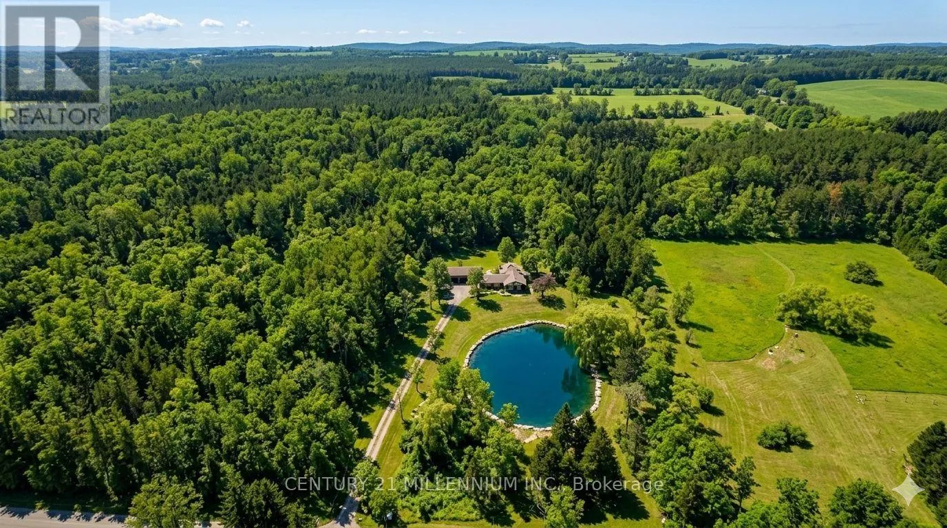 Private Waterfront Oasis on 5 Acres, 15 Minutes from 401, Experience ultimate privacy at this stunning 5-acre country estate with a 3 Car Garage, accessed via a long paved driveway. Surrounded by mature forest and centered around a massive private pond, this property offers a true “waterfront” lifestyle. This meticulously maintained back-split waterfront home features: 3 + 2 Bedrooms
