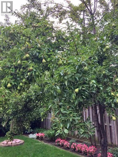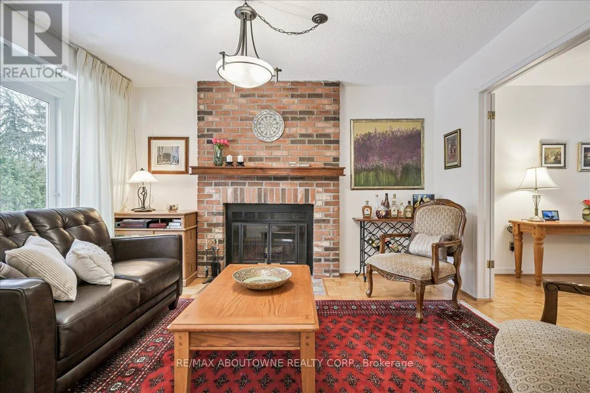 Smith Park, Brant Street Pier, Art Gallery of Burlington and Joseph Brant Hospital. Quick access to Burlington GO Station and Hwy 403, with Costco and Walmart close by.Curb appeal is exceptional with a double driveway, parking for four vehicles, attached double garage, interlocking stone curbing, manicured gardens and a welcoming stone walkway. The private backyard is a tranquil retreat featuring a spacious interlocking patio, mature trees, lush perennial gardens and a fruit-bearing pear tree-perfect for entertaining or enjoying quiet summer evenings.Inside, a striking oak staircase with black metal spindles anchors the foyer. The formal living room with parquet flooring flows through French doors into the warm family room with gas fireplace and walkout to the patio. The bright eat-in kitchen offers ample white cabinetry, stainless steel appliances (except fridge), updated laminate flooring and a generous breakfast area with treetop views. A separate dining room and convenient 2-piece bath complete the main level.Upstairs, hardwood flooring (2021) extends throughout the hallway, bedrooms and closets. The primary suite features a walk-in closet and private 3-piece ensuite, while two additional bedrooms share the main 4-piece bath. The finished lower level offers a versatile rec/media room with wide-plank laminate flooring (2022), a fourth bedroom or home office, and a full 3-piece bath. Numerous updates including roof shingles, windows (except patio door), front and rear doors, furnace and A/C complete this move-in ready home in a premium court location. (id:62650)