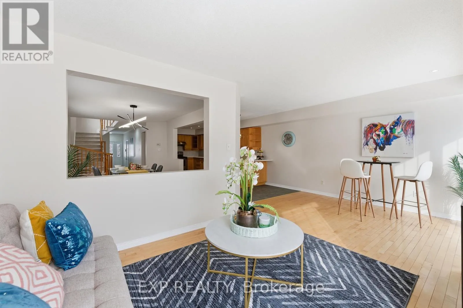 This INCREDIBLE END UNIT TOWNHOME is located in AWARD-WINNING STONEBRIDGE and offers an exceptional amount of space that truly challenges expectations. The OVERSIZED KITCHEN features NEW QUARTZ COUNTERS, STAINLESS STEEL APPLIANCES, and MAPLE CABINETRY, opening to a spacious LIVING AND DINING AREA plus a RARE MAIN FLOOR FAMILY ROOM complete with a cozy GAS FIREPLACE, delivering more room than some
