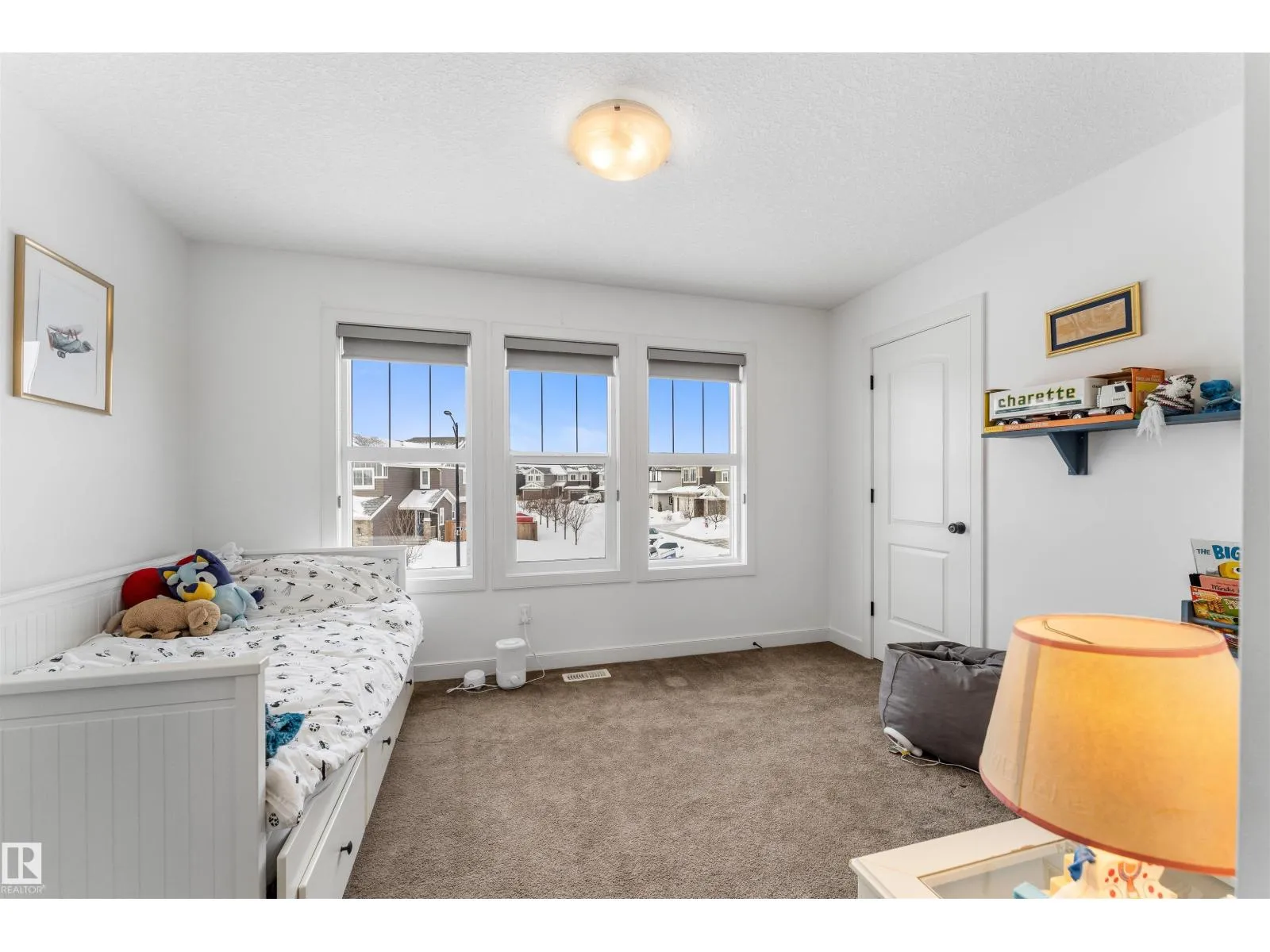 VA-VA-VA VOOM! You’re going to FALL IN LOVE with this GORGEOUS AIR-CONDITIONED 2-storey with 2,419 ft², 4 beds, 3.5 baths, BONUS ROOM, den + FULLY FINISHED WALKOUT basement with DOUBLE ATTACHED GARAGE backing beautiful Lake Relvas in NW Edmonton’s Trumpeter! Spacious entry leads to the bright living room with huge windows overlooking the lake! GAS FIREPLACE & sleek vinyl plank
