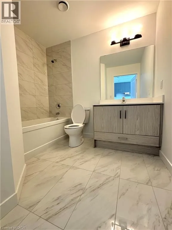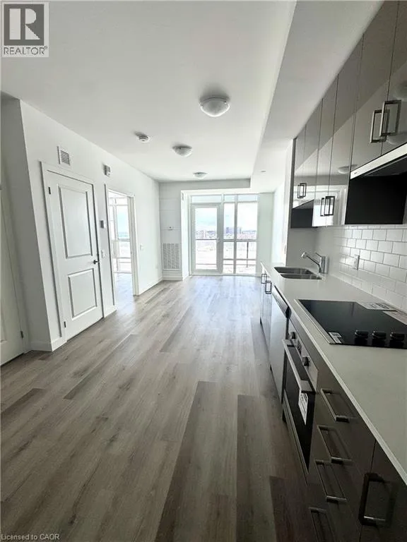 The Mauve Floorplan is a beautifully designed 1-bedroom, 1-bathroom suite located on the 7th floor, offering 525 sq. ft. of interior living space plus a 35 sq. ft. east-facing balcony with partial lakeview. This suite features 9-ft ceilings, floor-to-ceiling windows, luxury vinyl plank flooring throughout, quartz countertops, extended upper kitchen cabinetry, brand-new appliances, and convenient in-suite laundry with a stacking