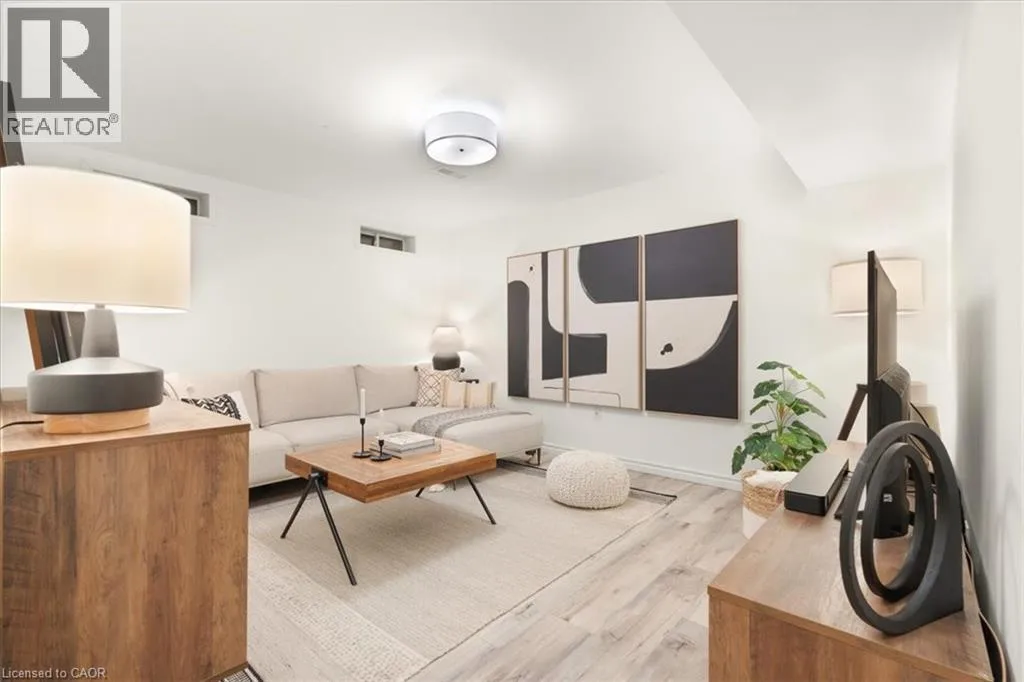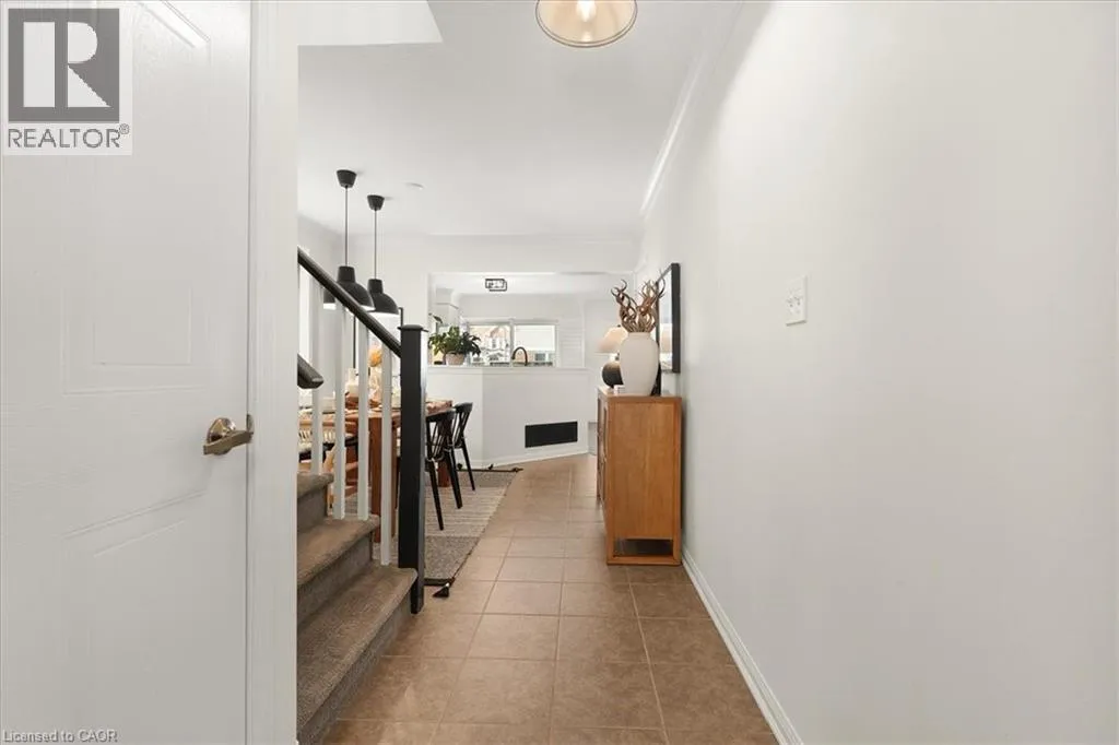 Welcome to this beautifully maintained 3-bedroom, 2.5-bath end-unit townhouse located in the heart of Cambridge. Offering exceptional space, comfort, and style, this move-in-ready home showcases numerous upgrades and refined finishes throughout. The bright open-concept main floor is ideal for both everyday living and entertaining, featuring upgraded laminate flooring throughout all levels, spacious living and dining areas enhanced with elegant crown