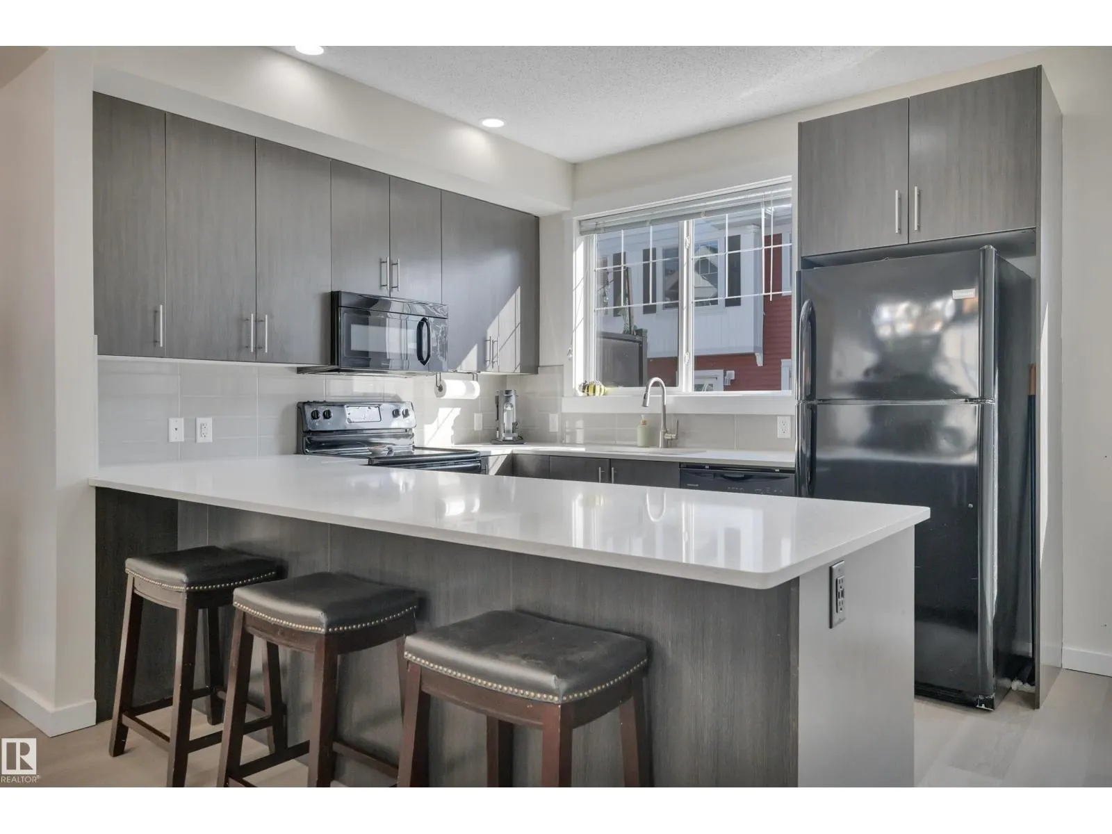 Welcome to this fully finished townhouse with a double attached garage and stylish upgrades throughout. Enter from the garage into a spacious den that doubles as the perfect guest entry. This versatile space is ideal for a home office, studio, or home nail salon. Upstairs, the bright main floor features beautiful vinyl plank flooring throughout with no carpet anywhere in