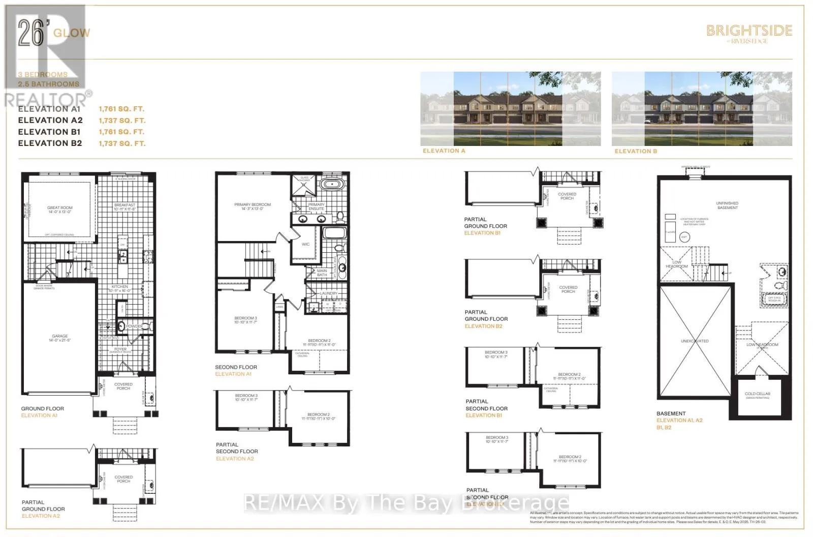 To Be Built (2027) – Located in the Brightside community with walking distance to Wasaga Beach public school and future high school. Welcome to the ‘Glow’ townhouse with 1,761 sq ft, 3 bedrooms and 2.5 bathrooms. Main floor is equipped with a 2pc bathroom, kitchen with island and pantry, dining area and separate living room. Upstairs, the second and third