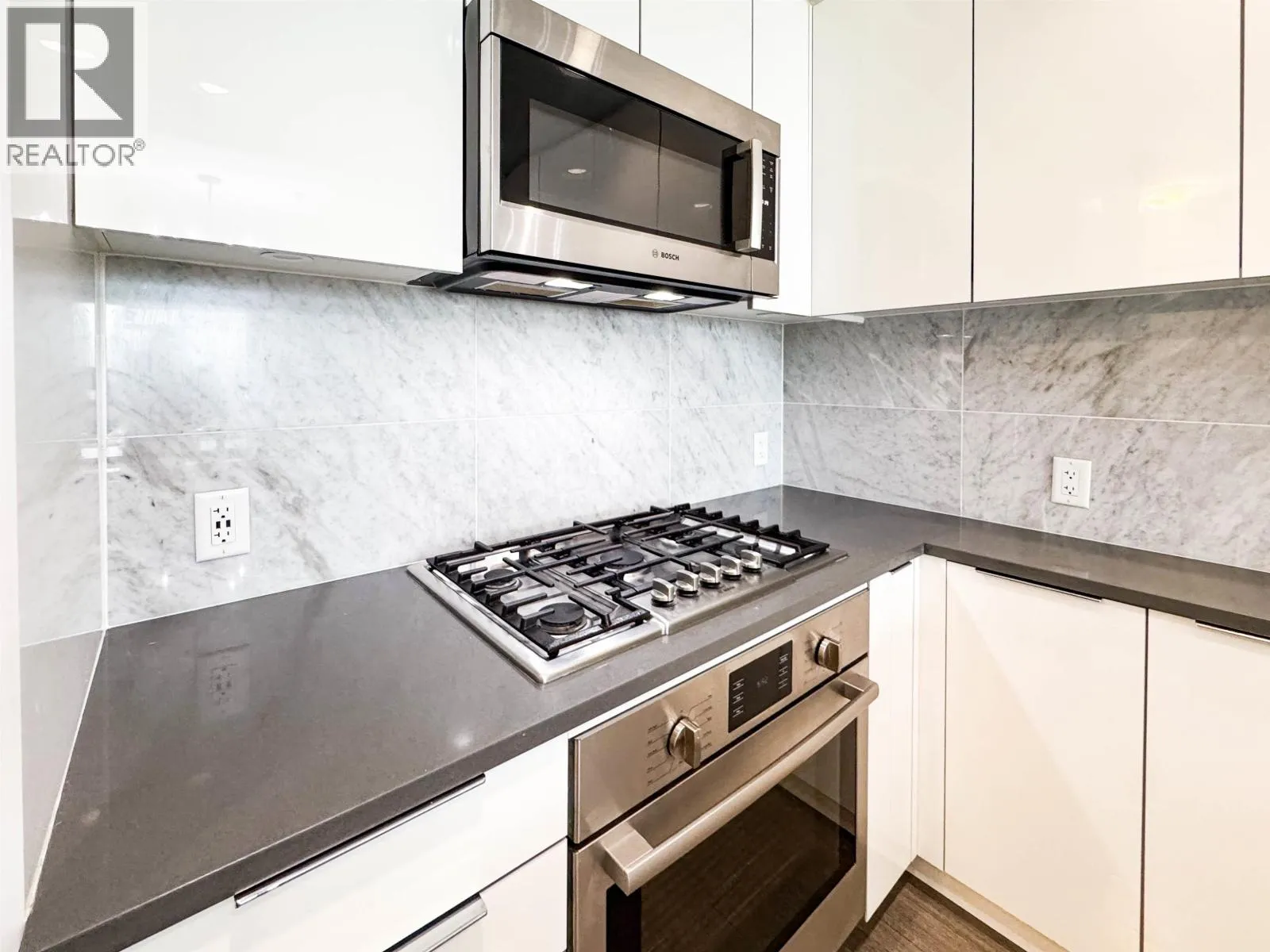Welcome to R+R by Polygon in the heart of the River District. This bright 961 sqft home features an open layout with in-floor radiant heating, laminate flooring, and a modern kitchen with stainless steel appliances, gas stove, and quartz island. The spacious primary bedroom includes a walk-in closet and a double-sink ensuite. Pet-friendly building with gym, parking, and a double-sized