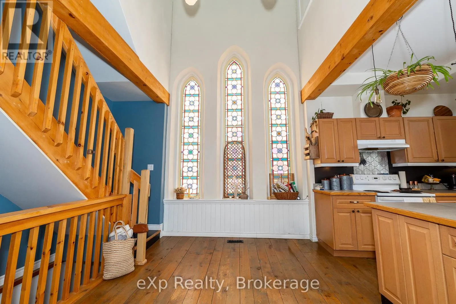 Own a piece of history with this professionally converted Knox Church home, set atop scenic Scotch Mountain on half an acre and surrounded by rolling farmland. Renovated in 2008, the home preserves its historic character while incorporating modern updates, showcasing vaulted ceilings, stained glass windows, and hardwood floors throughout. The main living area is expansive, anchored by a wood-burning fireplace