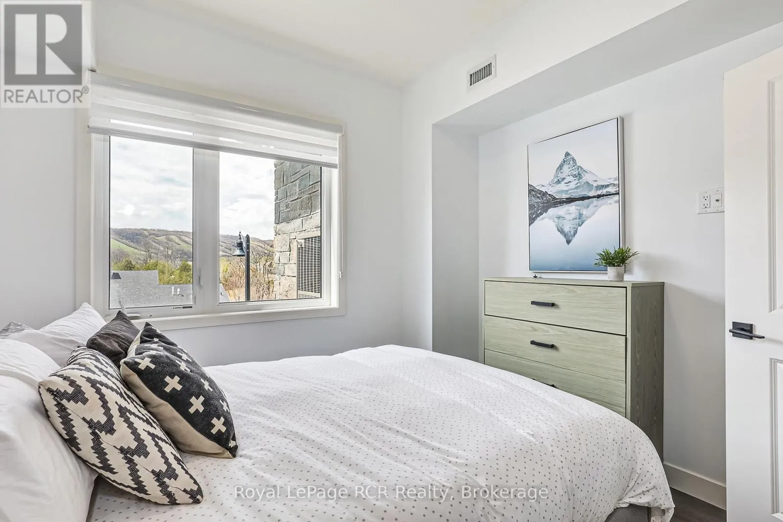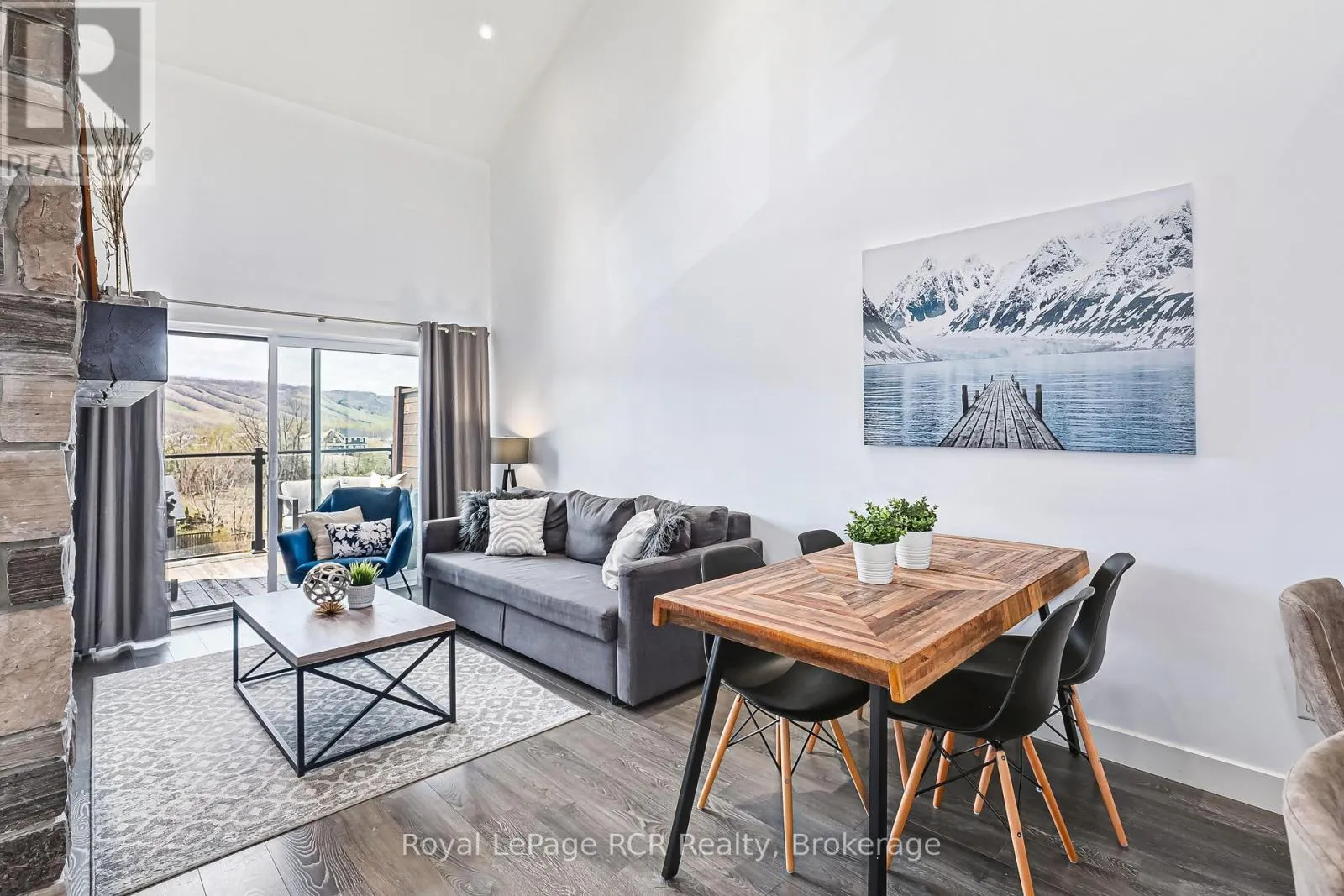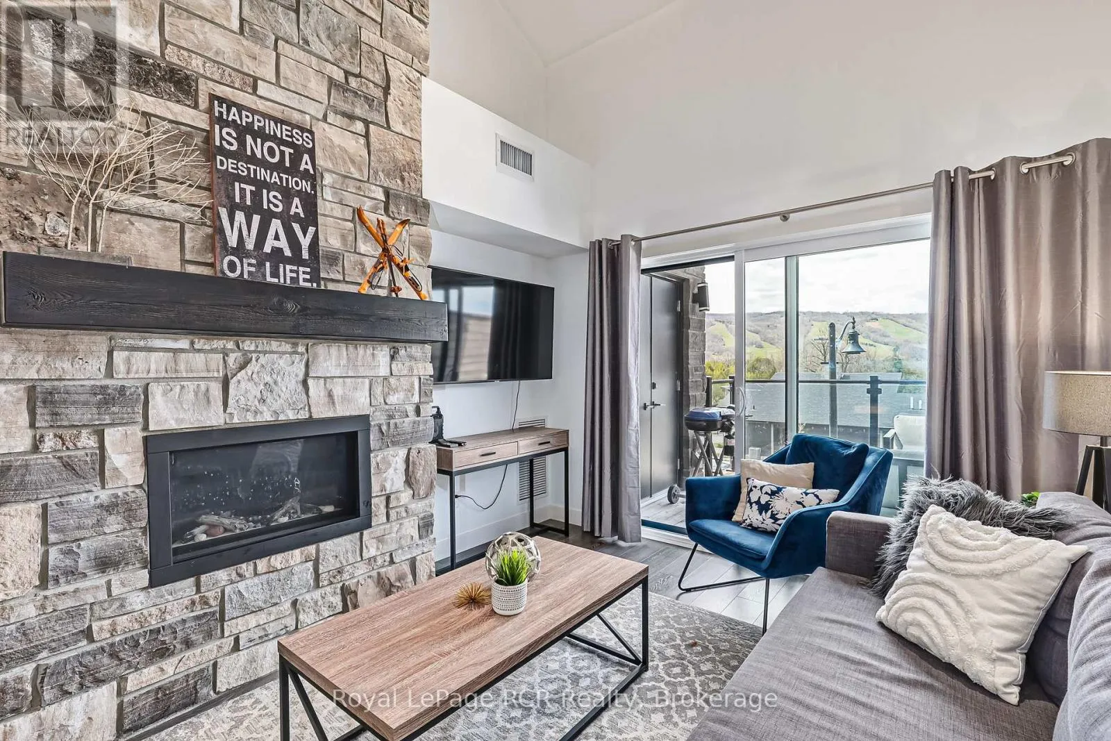 Welcome to 12 Beckwith Lane, Unit 305, a stunning third floor loft in the sought-after Mountain House community with breathtaking views of Blue Mountain. Being sold fully turn-key with all furnishings included, this spacious three-bedroom, two-bathroom condo in the Aspire building offers one of the largest floor plans in the complex. The open-concept living space features soaring cathedral ceilings, a