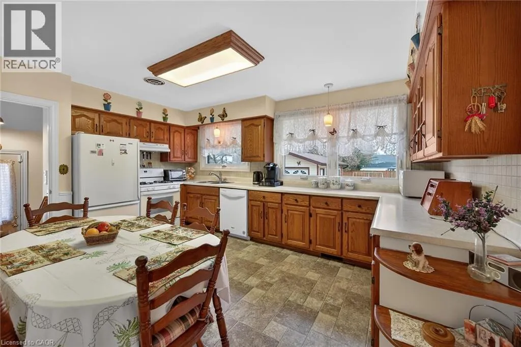 Lovingly maintained all brick 1965 built bungalow with finished basement and detached garage (blt in 2017) on mature treed 56x124ft lot in quiet area of Dunnville. This solid super clean home offers 3 bedrooms, 2 full bathrooms, large country sized eat in kitchen with oak cabinetry, gleaming original hardwood floors, and good sized lower level family room with gas fireplace.