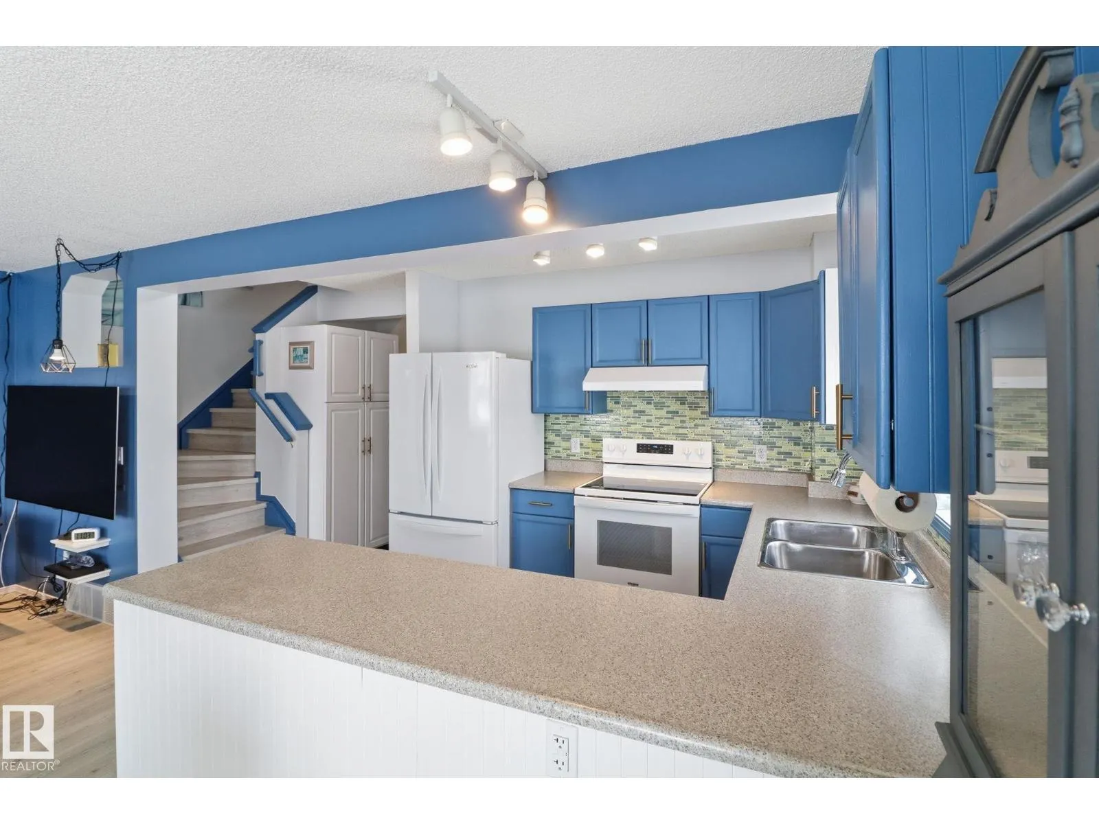 END UNIT | TWO PRIMARY SUITES | BACKING GREENSPACE | UPGRADES Welcome to this well-maintained end-unit townhouse in the desirable community of Sherwood Village. The bright and spacious main floor features new vinyl plank flooring, a cozy corner gas fireplace, a dining nook, and a spacious kitchen with peninsula island and upgraded newer appliances. Upstairs offers two generous primary suites,