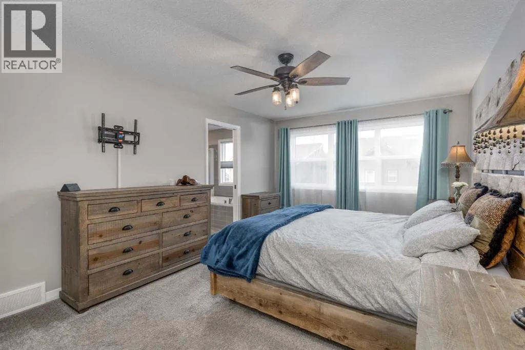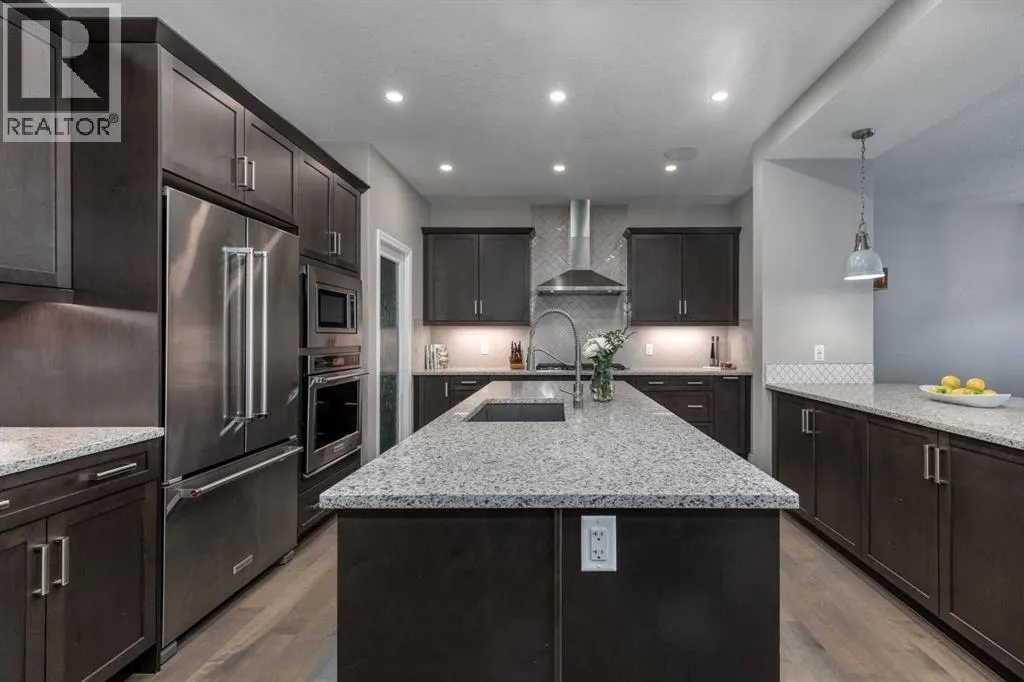 schools, parks, shopping, and everyday amenities.Built in 2018 and offering over 3,600 sq ft of developed living space, this spacious home features 6 Bedrooms and 4 Bathrooms, creating an ideal layout for growing families, guests, or multiple Home Offices.A welcoming Foyer opens into the bright and open Great Room, where oversized windows flood the Main Floor with natural light. The chef-inspired Kitchen is thoughtfully designed for both everyday living and entertaining, featuring KitchenAid Chef Series Appliances, including a 6-burner Gas Cooktop, Built-In Oven, Hood Fan, and Dishwasher. Dual Islands provide exceptional prep space, storage, and seating, making this Kitchen the natural gathering place for family and friends.The Dining Area flows into the inviting Living Room, where a cozy Gas Fireplace creates the perfect setting for quiet evenings or larger gatherings. Built-In Speakers throughout the home, along with Outdoor Speakers on the deck, enhance the atmosphere for entertaining.Step outside to the impressive 20’ x 18’ Composite Deck, overlooking the treed backyard that provides privacy and a peaceful outdoor setting. Designed for relaxing evenings and summer gatherings, the deck is also wired for a future Hot Tub.Upstairs, the Primary Bedroom offers a spacious retreat with room for a King-sized bed and seating area. The spa-inspired Ensuite features Dual Vanities, a Makeup Counter, Large Soaker Tub, Stand-Up Shower, and two generous Walk-In Closets.A centrally located Bonus Room provides the perfect space for movie nights or a family lounge. Two additional Bedrooms, a Full Bathroom, and convenient Upper-Level Laundry complete the second floor.The Fully Developed Basement expands the home to six Bedrooms, adding three additional Bedrooms and a Full Bathroom—perfect for larger families, teenagers, guests, or flexible space such as a Gym, Office, or Hobby Room. Basement bedroom windows were replaced in 2025 with Triple-Pane Units, improving comfort and efficiency.Additional highlights include Central Air Conditioning installed in 2024, Tankless Hot Water, Built-In Sound System, Permanent Soffit Lighting, durable James Hardie Fiber-Cement Siding, and an Oversized Double Attached Garage (20’ x 24’) with Epoxy-Coated Floors.Enjoy Riviera’s pathway lifestyle while living just minutes from schools, shopping, and Cochrane’s vibrant downtown. (id:62650)