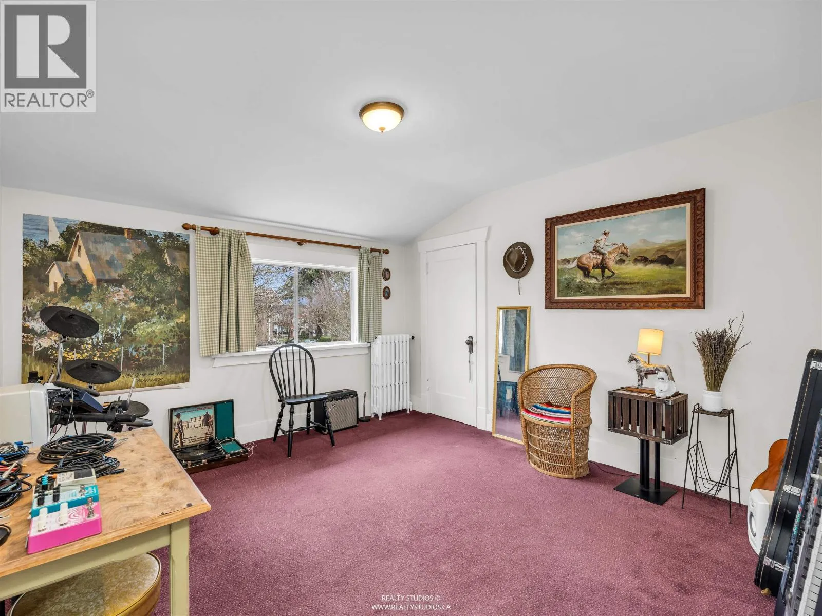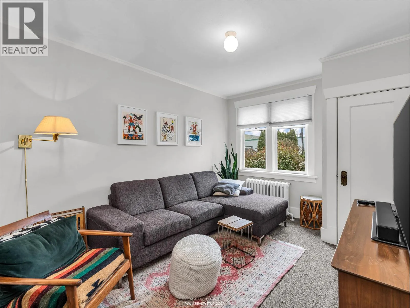 Classic 1930s character home on a corner lot of quiet traffic calm street. East-facing with original oak inlaid floors with walnut detail, wood-burning fireplace with brick surround, and timeless built-ins. Bright kitchen with updated cabinet fronts, breakfast nook and deck access. Beautiful rounded ceilings throughout. Flexible main-floor den/bedroom plus full bath. Upstairs offers two bedrooms including a primary with built-in