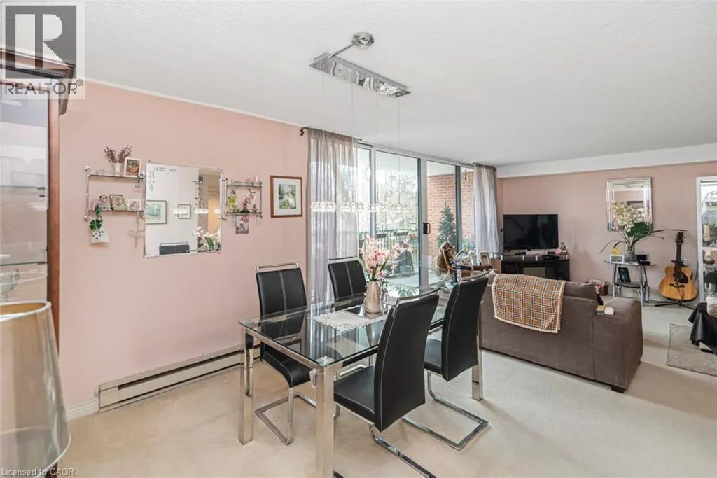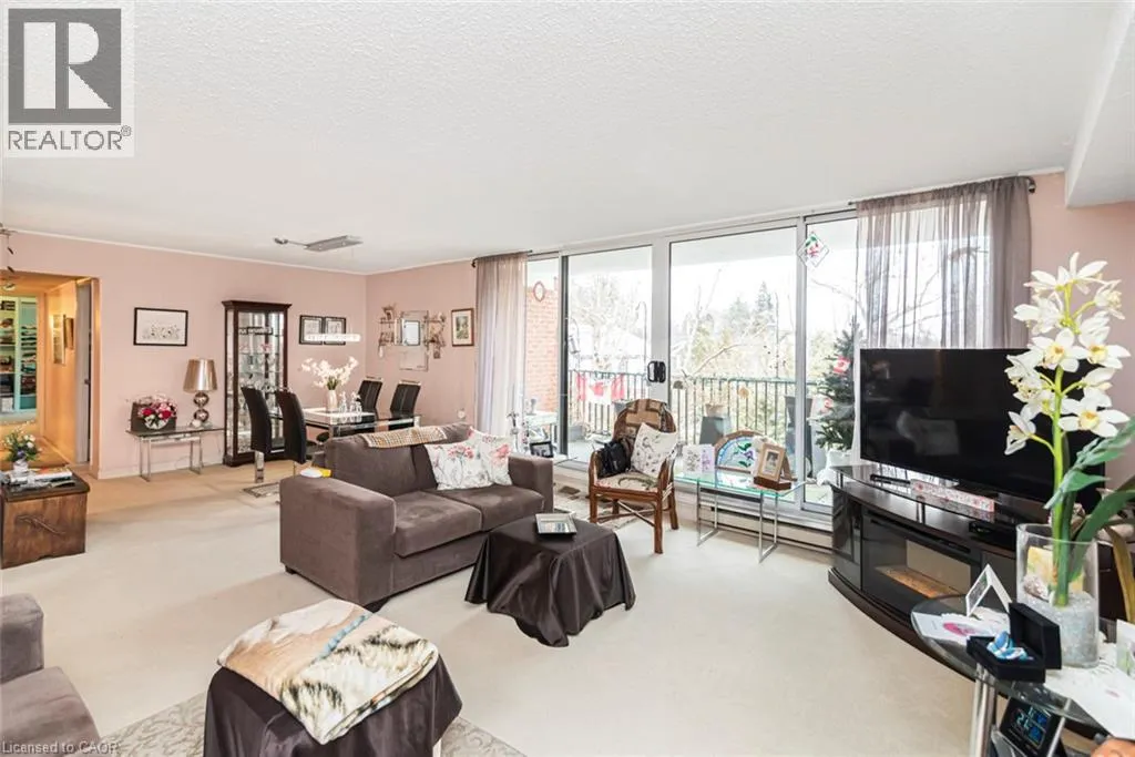 Welcome to Suite 304 at 150 Wilson Street West in Ancaster. This spacious 1,418 sq. ft. condo offers two bedrooms, two bathrooms, in-suite laundry, and a bright, functional layout. The large living and dining area opens to an oversized private balcony, perfect for relaxing outdoors. The kitchen features ample cabinetry with well-maintained original finishes. The primary bedroom includes a private