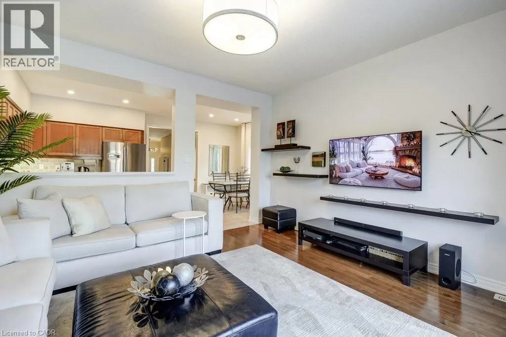 Executive semi-detached home in desirable Waterdown with parking for 3 cars! This modern home features an open concept layout with 9 ft ceilings on the main floor and large windows throughout that fill the rooms with natural light. The separate dining room and spacious eat-in kitchen with backyard access, provide all the space needed for family meals and entertaining. The