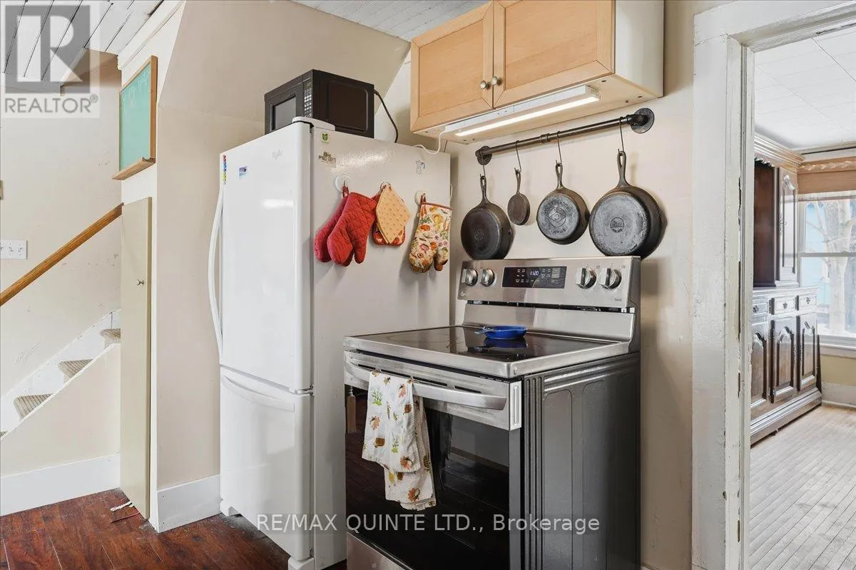 Bloomfield Main Street Century Home with loads of potential! Discover endless possibilities in this inviting 1.5 storey century home located right on Bloomfield’s Main Street. Set on a rare triple wide lot with 158 feet of road frontage, this property provides ample space for family living and potential future expansion. The main floor boasts a spacious kitchen complete with an