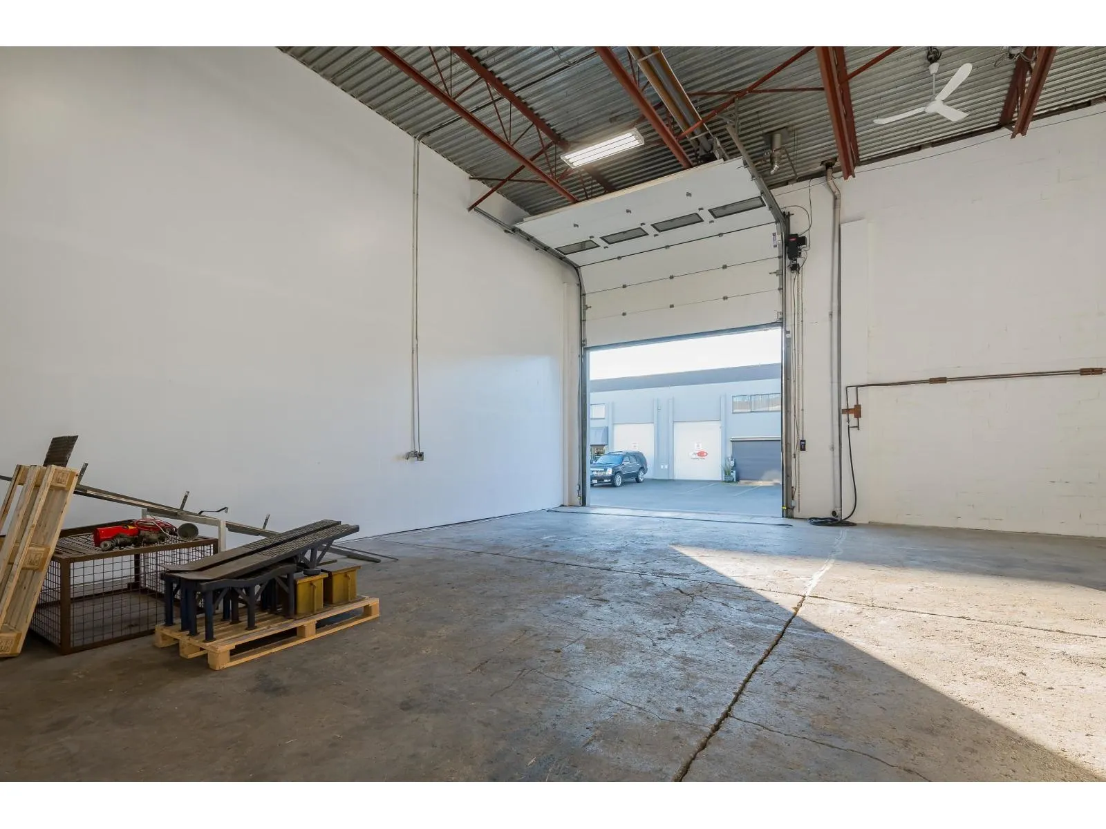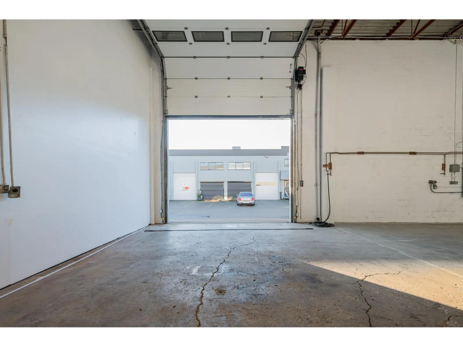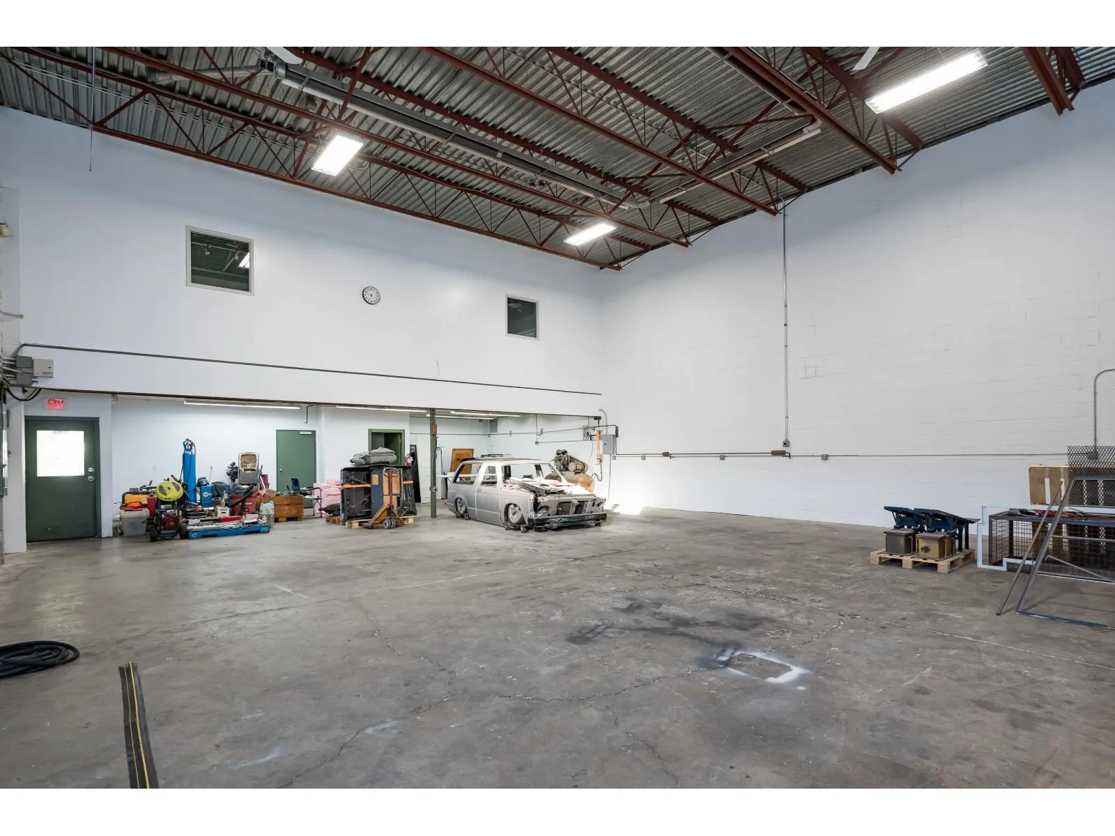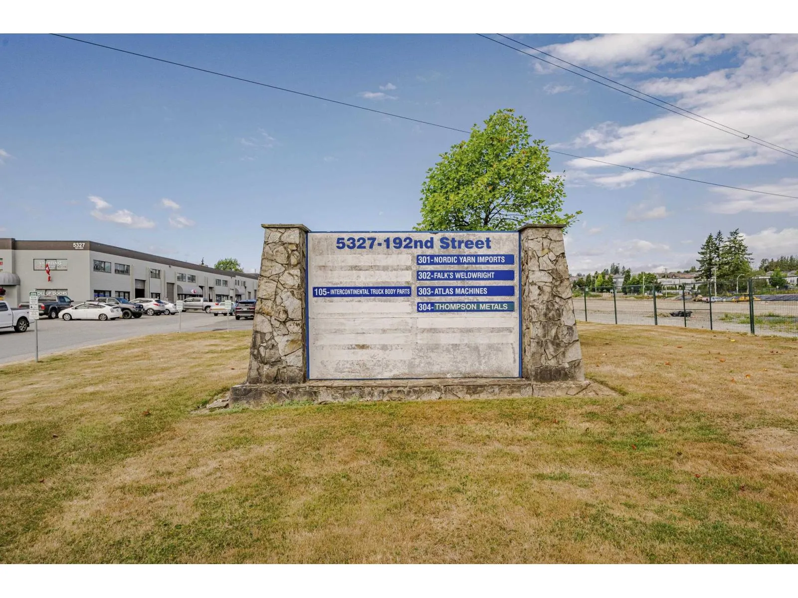 (Rare Automotive Use Permitted) End Unit with total of 3174 sq ft. Main warehouse is 2400 sq ft (60 x 40) and includes a bathroom on the ground level. 714 sq ft office space above that has full kitchen and bathroom with permits. The industrial zone, 240 electric & phase 3 Power. 14 x 12 bay door and 1 loading