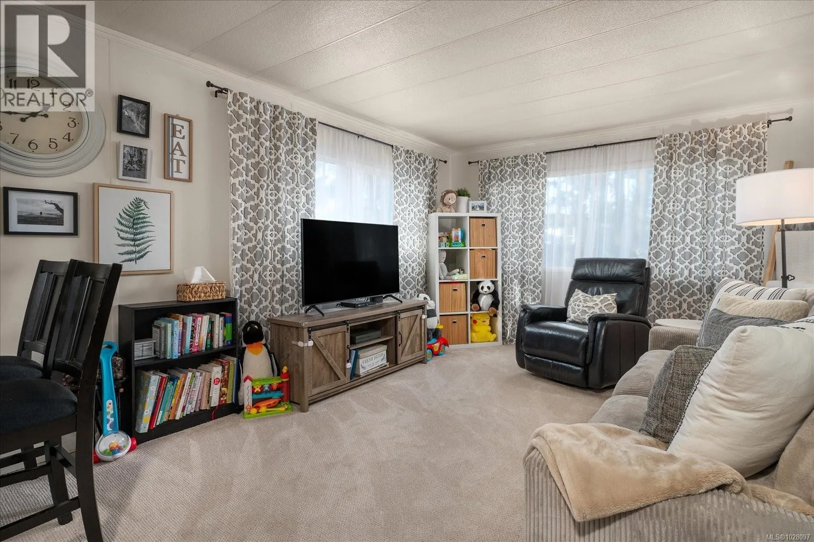 This well-maintained 2-bed, 1-bath mobile home offers excellent value with recent renovations. Enjoy new carpets and updated flooring in the entrance, laundry area, and dressing room. The home features newer vinyl windows, plus significant back wall improvements including new plywood, triple papering, daylight glass, and updated flashing. Exterior upgrades include new siding on one side, freshly stained shiplap at the
