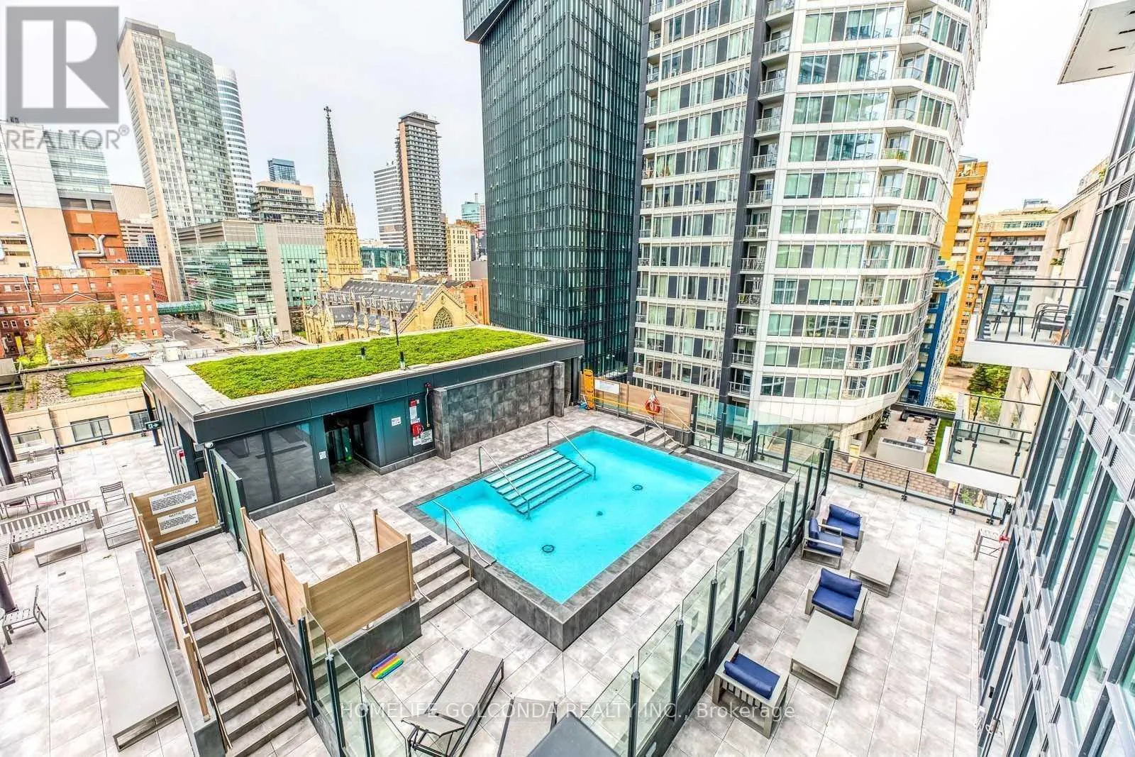 South Facing, Supper Big 154 Sqt Balcony + Large Window In Great Shape. Modern Kitchen With Built In Shelves, Under Cabinet Lighting, Island/Tables With Movable Lower Cabinet. Den Can Be Used As A 2nd Bdrm Or Office. Smooth Ceiling. Concierge, Gym, Outdoor Lounge, Pool, And Bbq Area Etc. Walk To Eaton Centre, Ryerson University, George Brown College, Financial District, St
