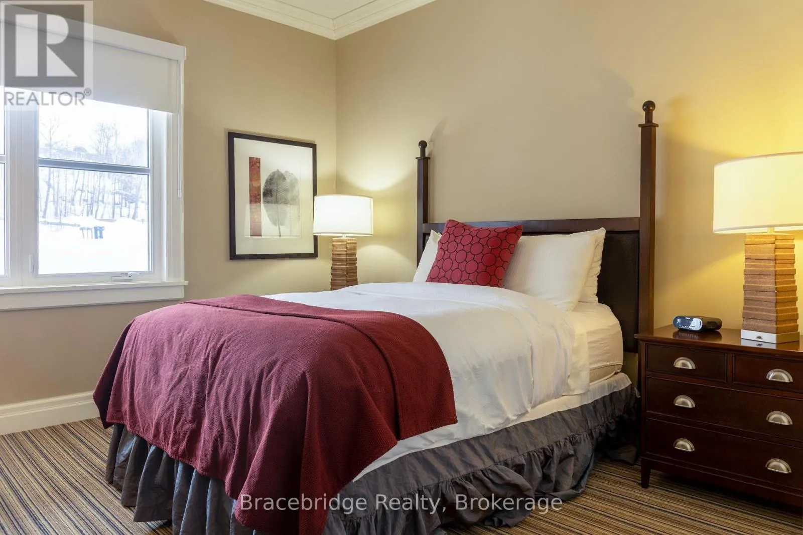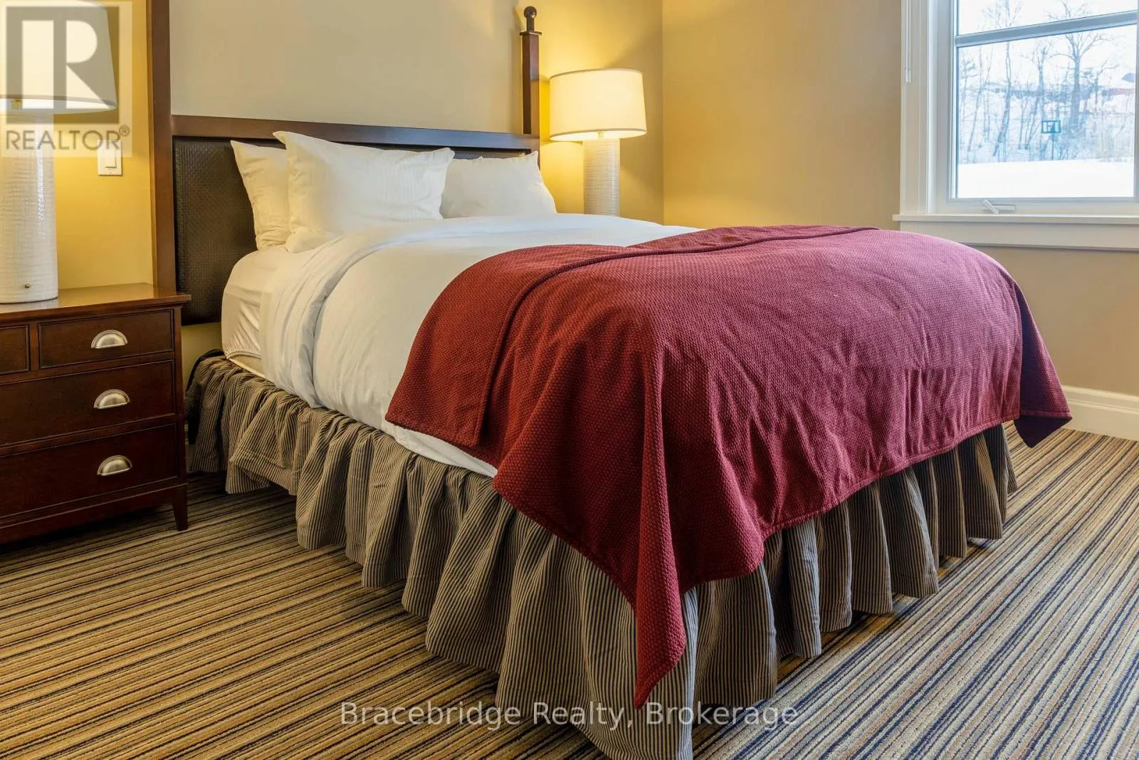 Welcome to G104 at Touchstone Resort, a luxurious 4-bedroom fractional ownership unit (1/8 share) offering breathtaking views over sparkling Lake Muskoka. This beautifully designed two-story suite combines high-end cottage living with the ease of maintenance-free ownership. Step inside to find a fully equipped gourmet kitchen, an inviting Muskoka Room with a floor-to-ceiling stone fireplace, and a covered outdoor deck that