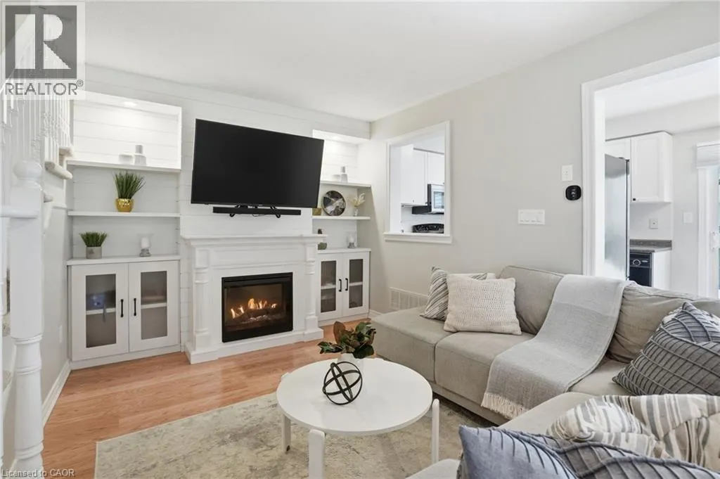 Discover incredible value in East Waterdown with nearly 2,000 square feet of living space across three beautifully finished levels! Welcome to 66 Blue Sky Trail, an end-unit townhome where extra windows and only one shared wall mean natural light and privacy throughout. The main level features an open-concept living and dining area with custom shiplap built-ins and a cozy fireplace,