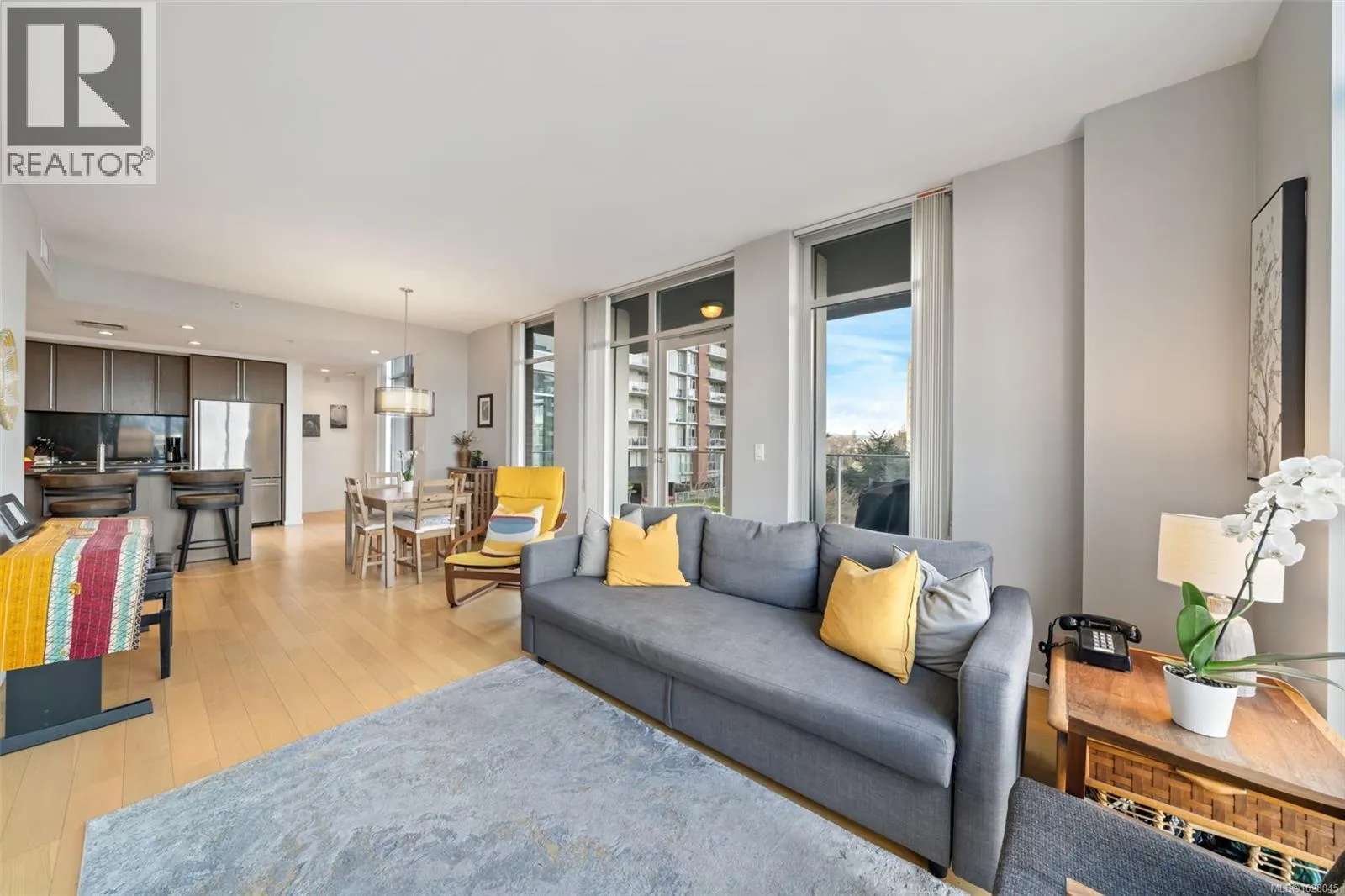 Enjoy elevated city views from this beautifully appointed 2-bed, 2-bath residence at Bayview One, ideally positioned in the vibrant Bayview community. Floor-to-ceiling windows frame a stunning panorama of the iconic Johnson Street Bridge and the energy of downtown Victoria, while the home itself feels calm and private above it all. The open-concept living and dining area flows seamlessly into a