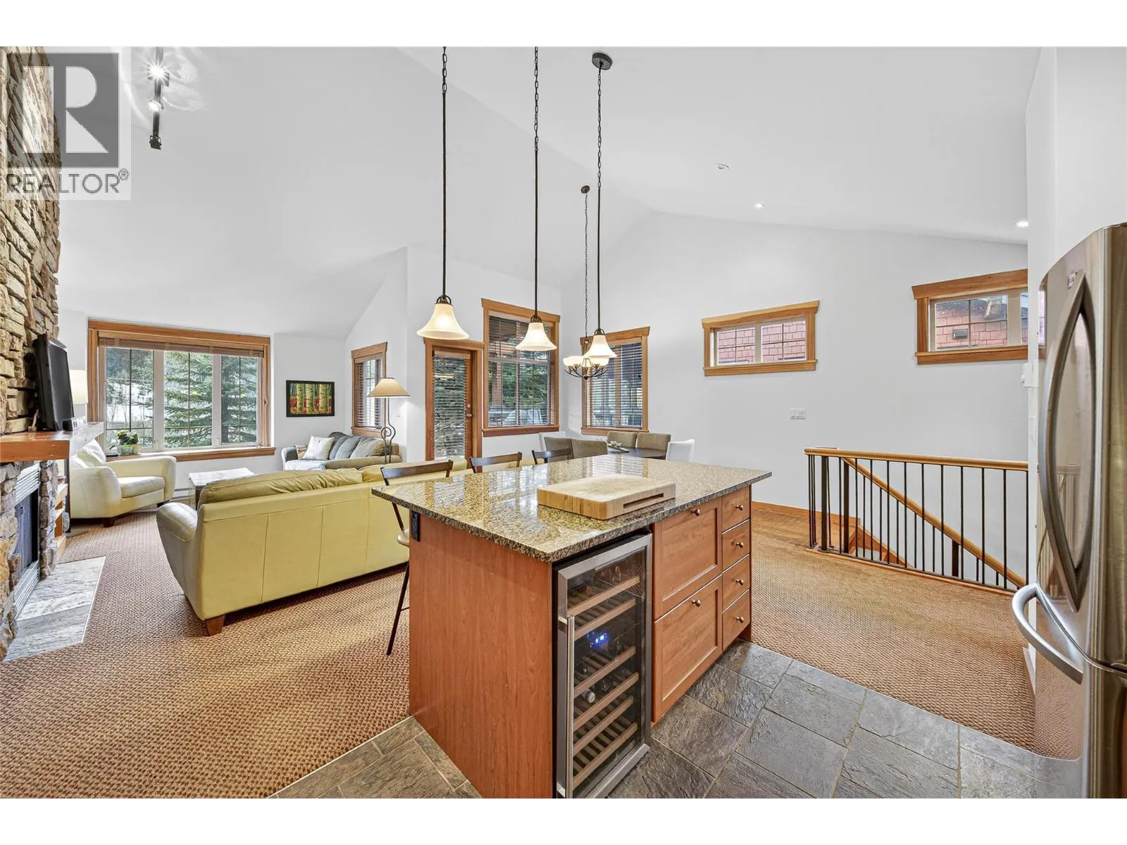 Welcome to this beautifully maintained end-unit at Pinnacle Ridge, offering magnificent valley and mountain views just minutes from Fernie Alpine Resort. This 3-bedroom, 2-bathroom home features vaulted ceilings, custom finishes, fresh paint, and a cozy fireplace that creates the perfect mountain atmosphere. The open-concept layout feels bright and welcoming, with a spacious kitchen featuring granite countertops and stainless steel appliances