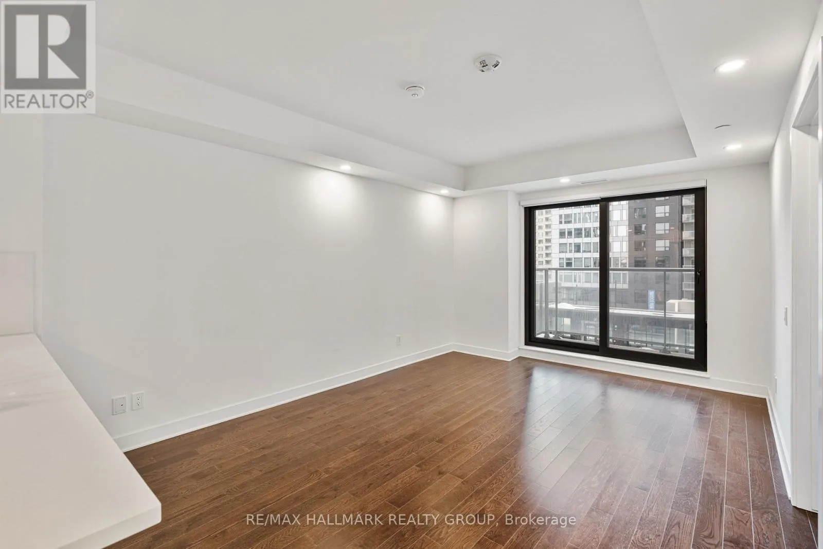 Experience stylish downtown living at Claridge Royale. This bright 1-bedroom, 1-bath condo features hardwood floors, quartz countertops, modern white cabinetry, and stainless steel appliances in a sleek open-concept layout. Large windows bring in plenty of natural light, and the private balcony offers beautiful city views. Enjoy the convenience of in-unit laundry and a contemporary glass-enclosed shower. Located in the heart