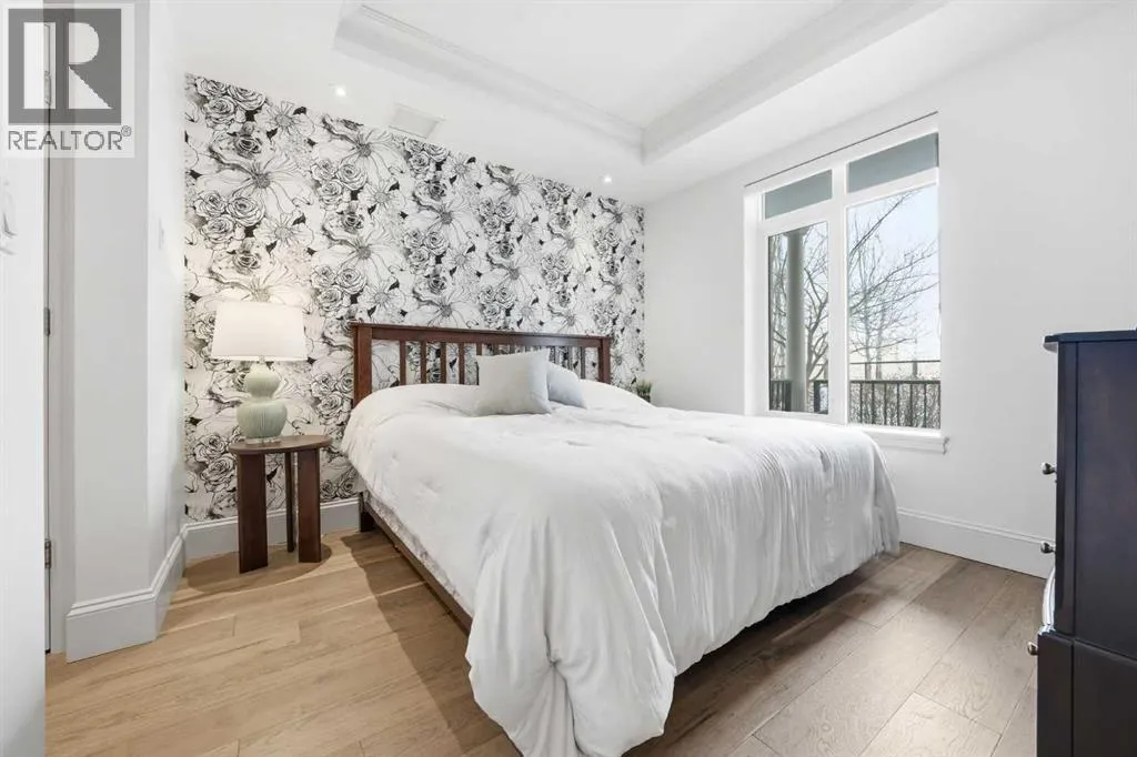 Experience a sophisticated, low-maintenance lifestyle in this luxury main-floor condo located in the Champagne building, South Calgary’s premier residence. Backing onto serene green space just steps from the Bow River, this home features 10-foot ceilings, rich engineered hardwood floors, and estate-level finishes throughout. The gourmet kitchen is a chef’s dream, boasting 42-inch soft-close cabinetry, upscale stainless steel appliances, polished granite
