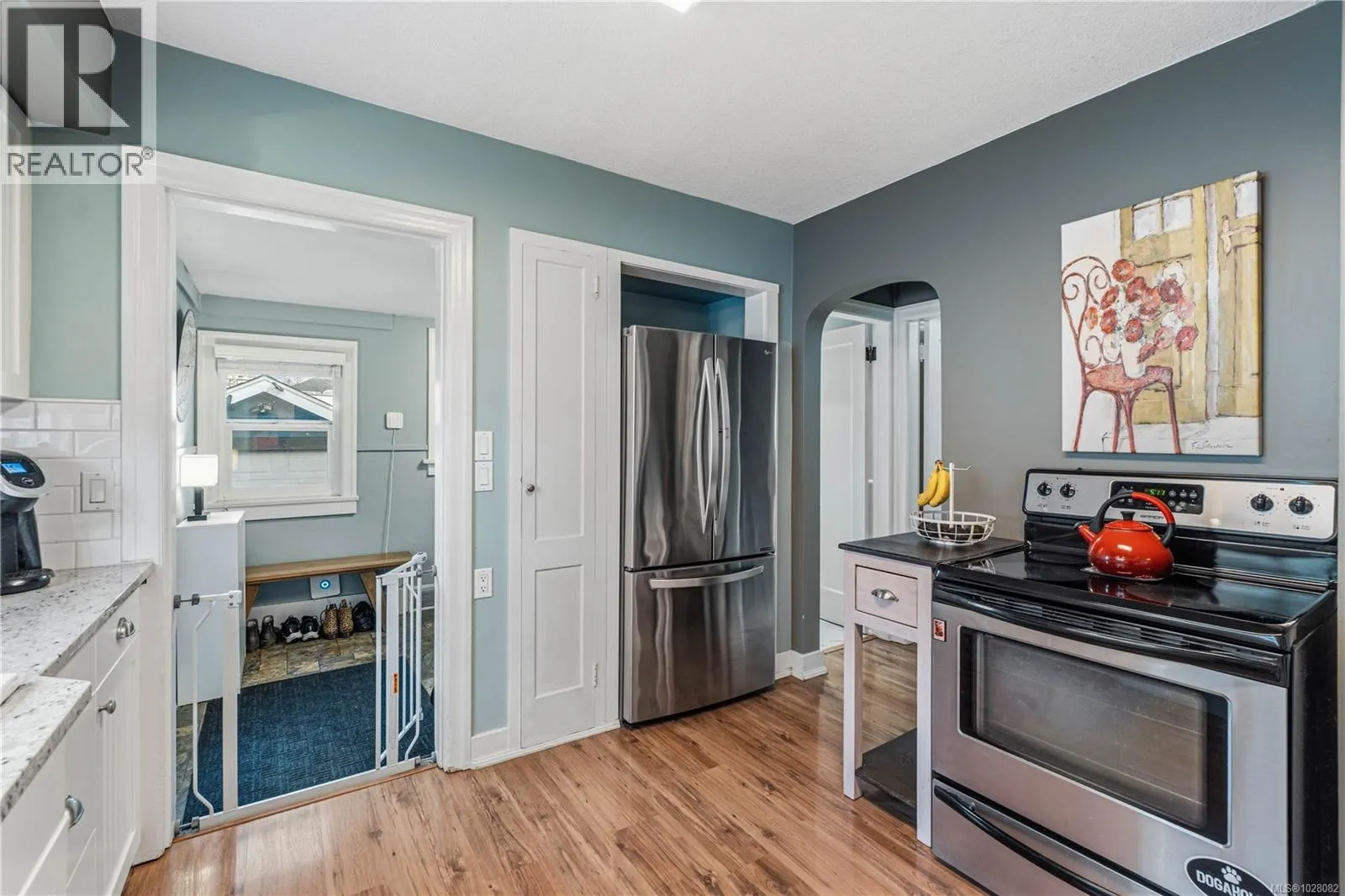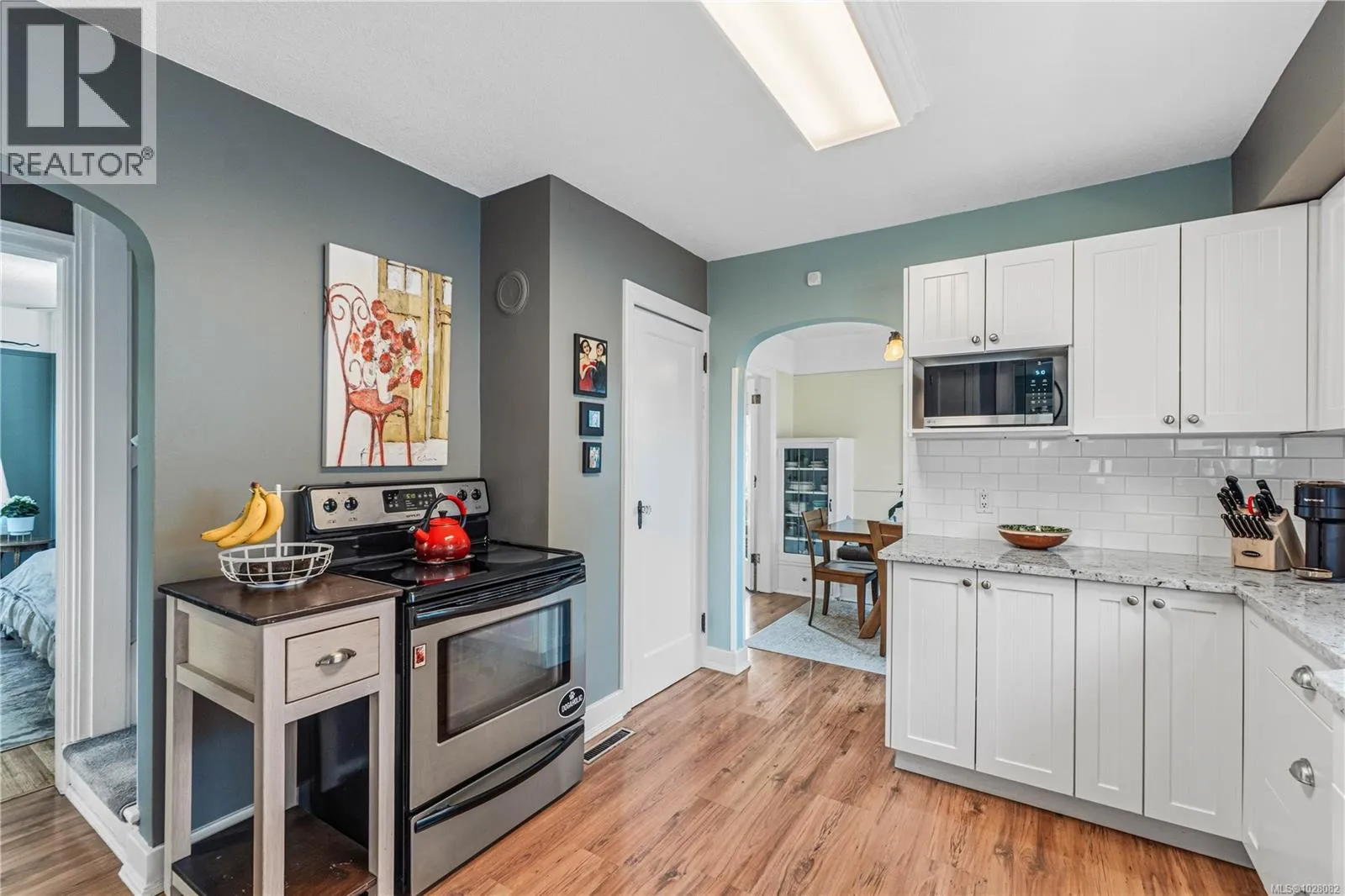 Charming Character Home ~ Step inside this delightful gem and admire the oak floors with elegant inlays. The main level offers a bright living room, a formal dining room with built-in bench and cabinets, an updated newer kitchen & bathroom, plus a primary bedroom and laundry for easy convenience. Upstairs, you’ll find two cozy attic-style bedrooms, while the lower level